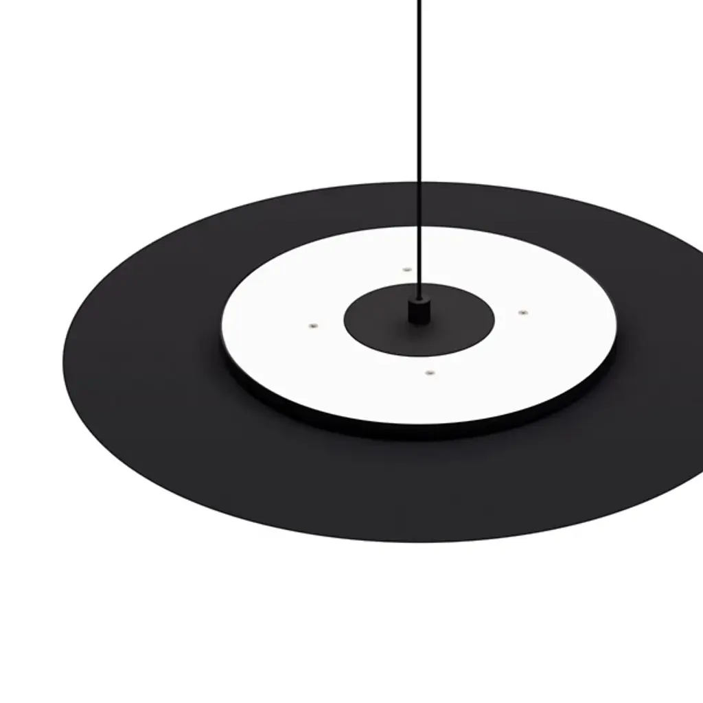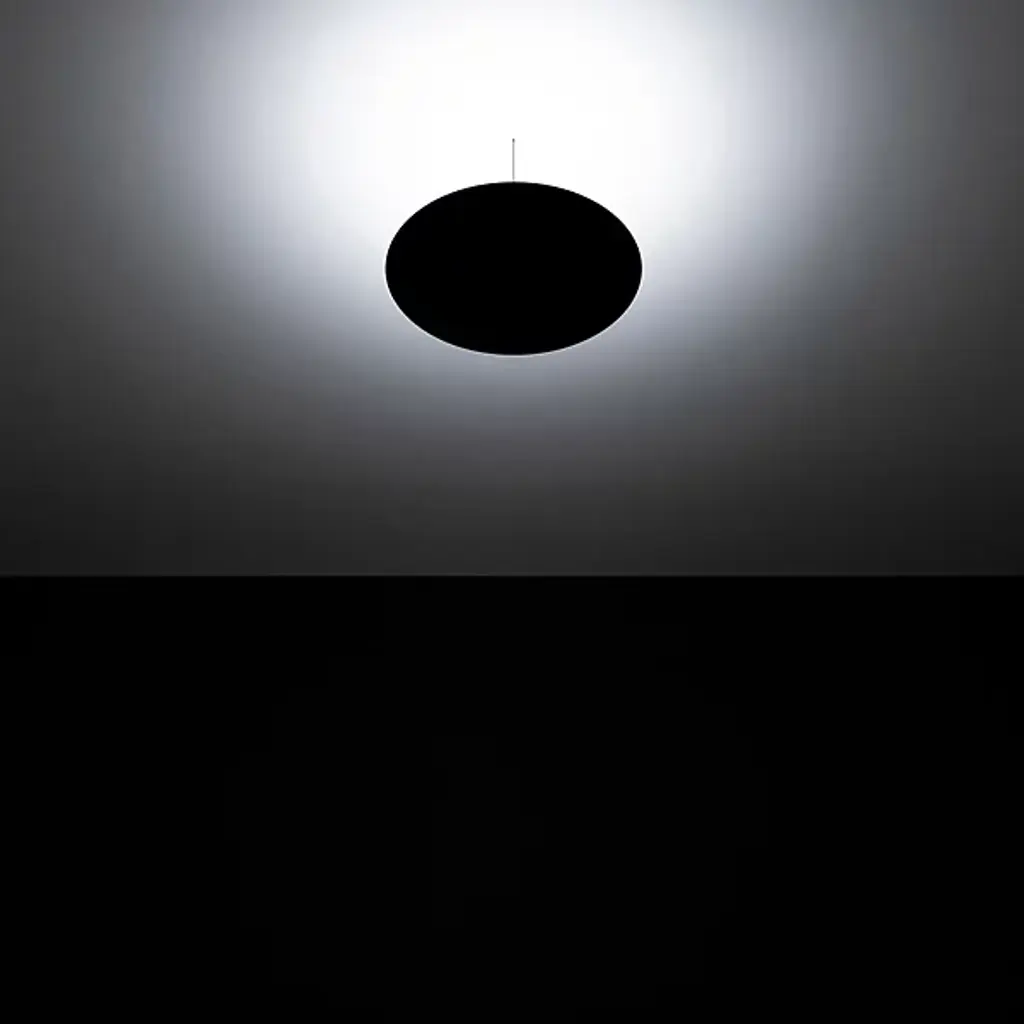 The Asintoto LED Pendant from Davide Groppi is an elegant and refined light fixture that uses minimalist aesthetics to suit a wide array of established decors. A slender disc in a Gravity Black finish shines light upward against the ceiling to fill the room with ambient illumination, with a dark circle in the center that creates a sense of mystery. Made in Italy from metal and methacrylate, this product possesses a strength and durability that will hold it in place for many years.