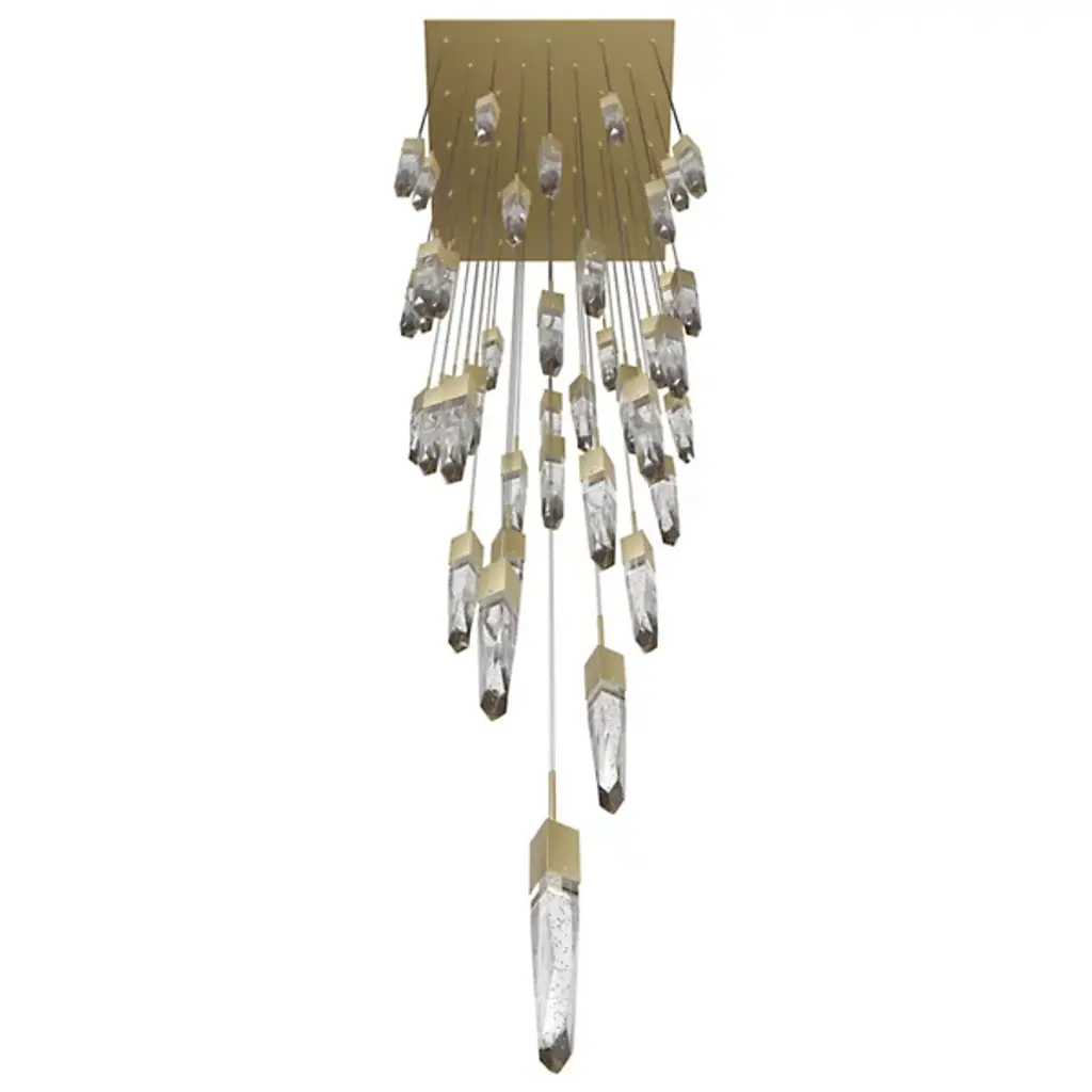Luxuriously designed to be prominently placed in a variety of upscale spaces. The Aspen Multi-Light Pendant by Avenue Lighting is truly a spectacle to behold, boasting a dazzling array of pointed Crystal shades suspended at different heights from a large square canopy. Available in a selection of beautiful finishes and with several choices of light quantities, this LED multi-light pendant produces a tranquil, cascading illumination that's sure to make it a point of pride in your palace.