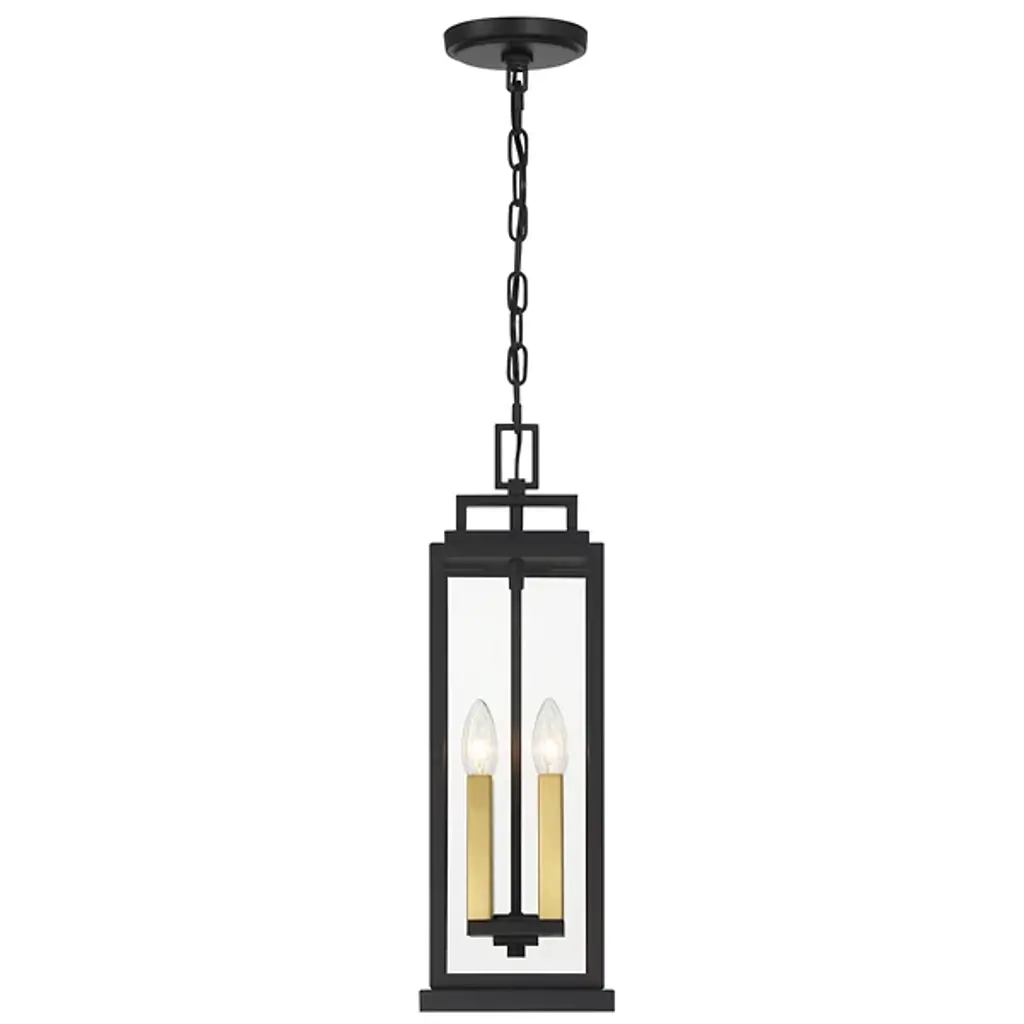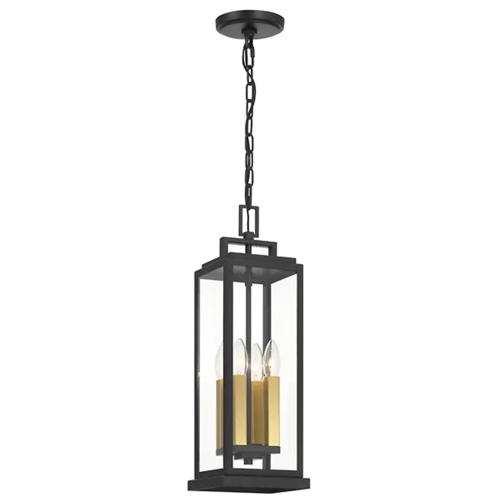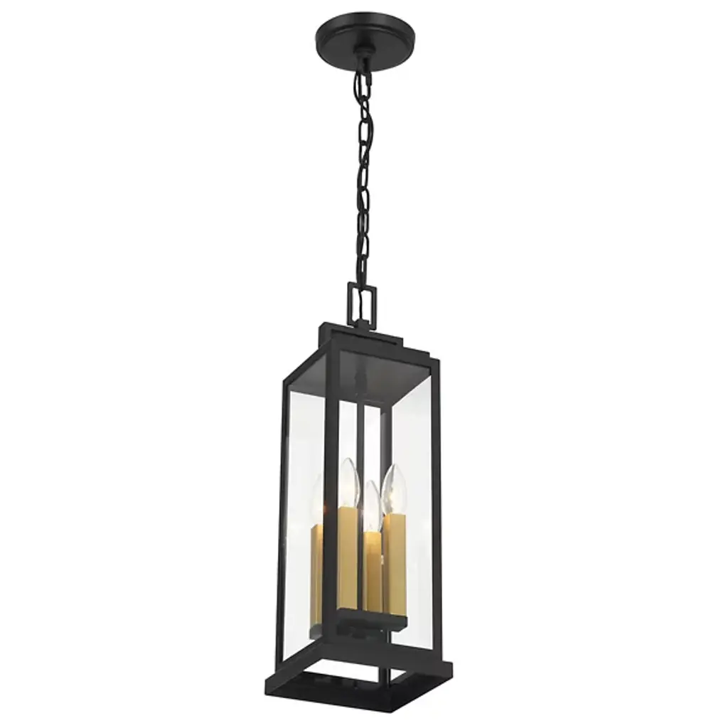 The Aspen Outdoor Pendant from Crystorama is where transitional meets outdoor sophistication. Crafted with durability and style in mind, this pendant light brings a touch of warmth and charm to your outdoor space. Featuring flame-shaped LEDs housed within a steel prism, Aspen creates a mesmerizing glow that beautifully illuminates your outdoor area. It includes white and gold candle sleeves, adding versatility and elegance to the fixture. Made from high-quality steel and complemented by clear glass shades, Aspen exudes durability.