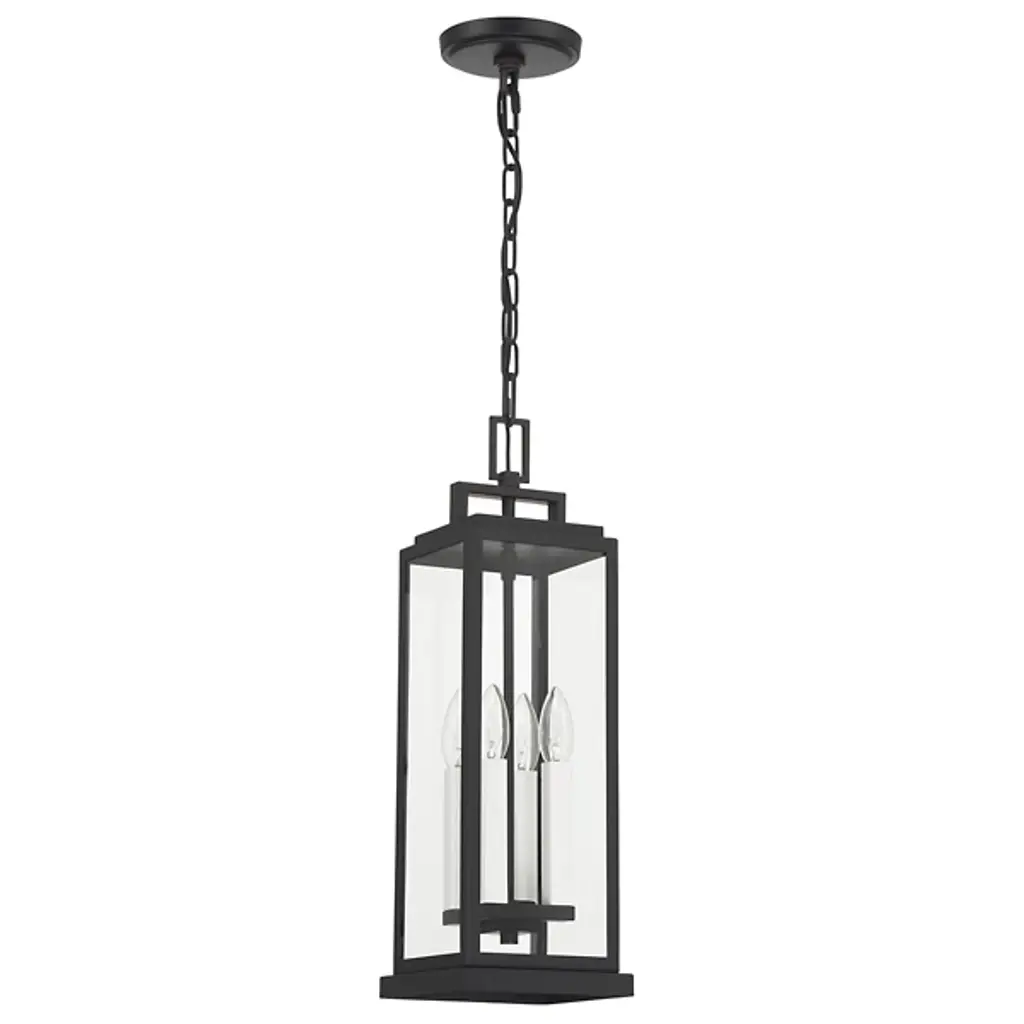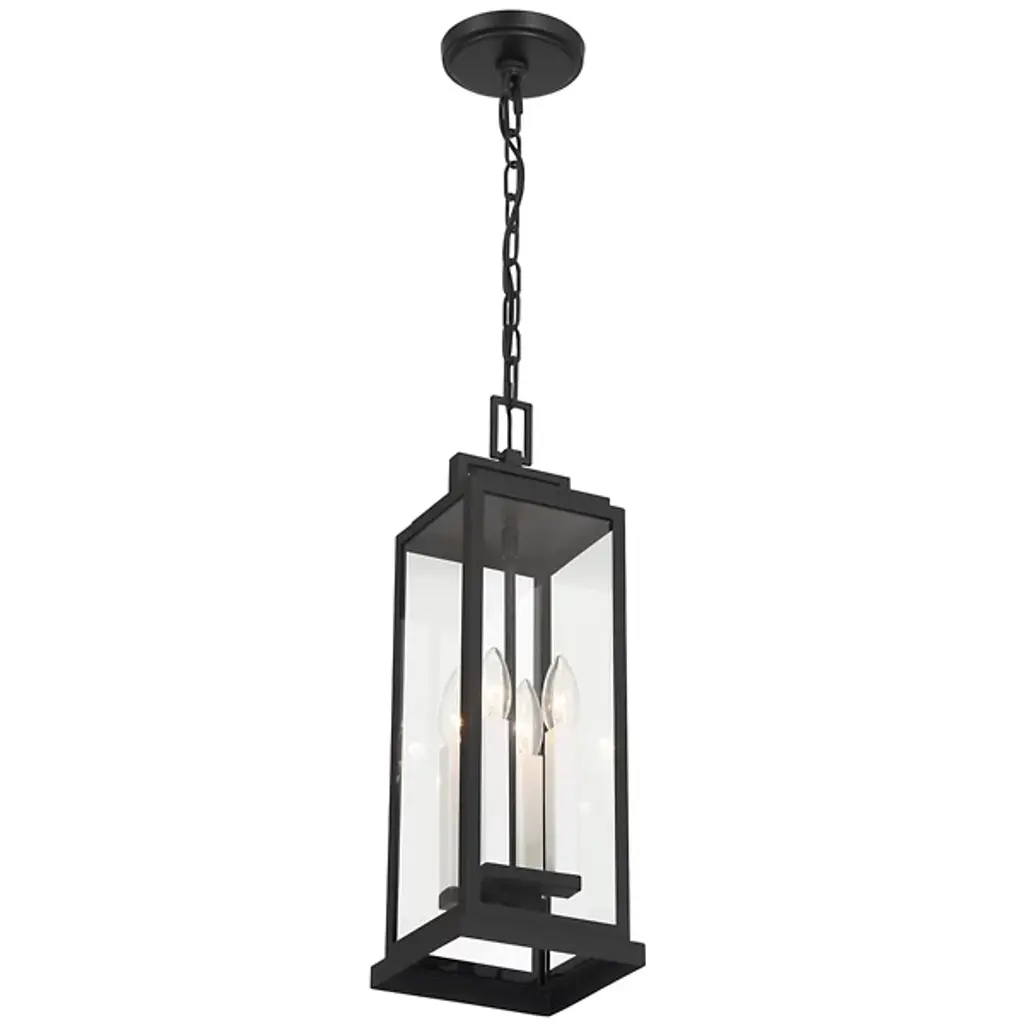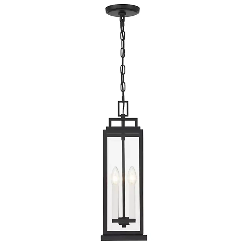 The Aspen Outdoor Pendant from Crystorama is where transitional meets outdoor sophistication. Crafted with durability and style in mind, this pendant light brings a touch of warmth and charm to your outdoor space. Featuring flame-shaped LEDs housed within a steel prism, Aspen creates a mesmerizing glow that beautifully illuminates your outdoor area. It includes white and gold candle sleeves, adding versatility and elegance to the fixture. Made from high-quality steel and complemented by clear glass shades, Aspen exudes durability.