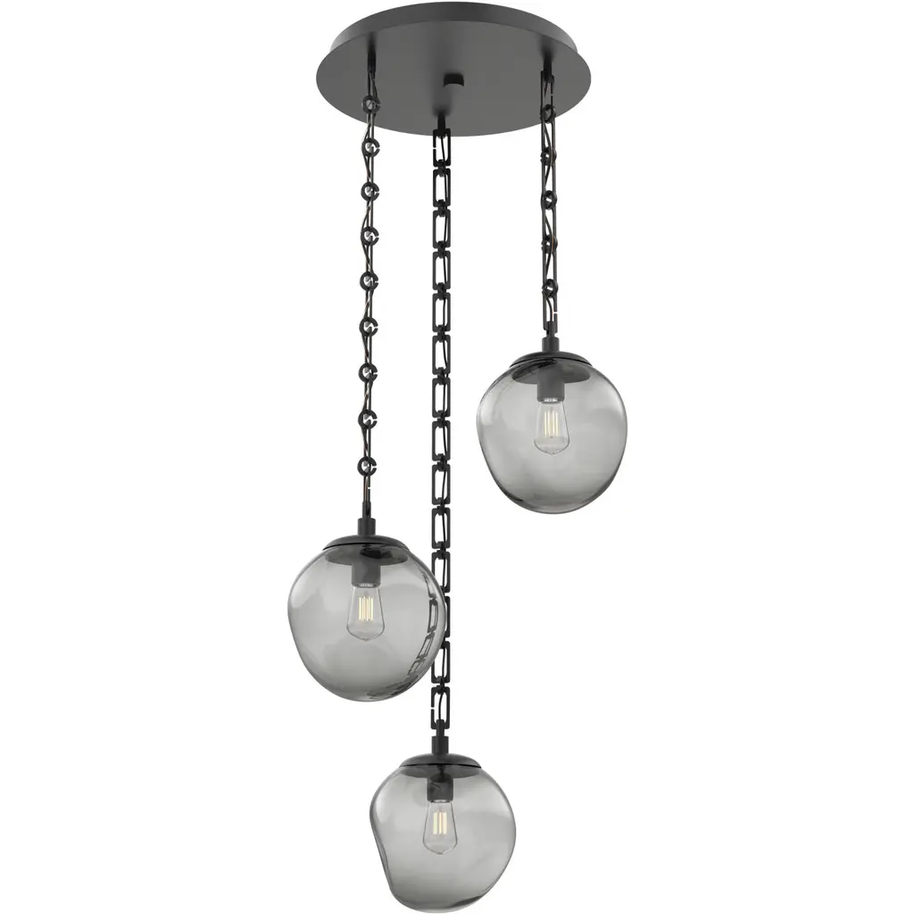 The Nebula Aster Round Pendant Chandelier features softly undulant 10D round shades in artisan blown crystal glass with an E26 base that takes one 40W bulb. Suspension options include cloth-braided cord or handcrafted chain in three vintage-inspired styles.