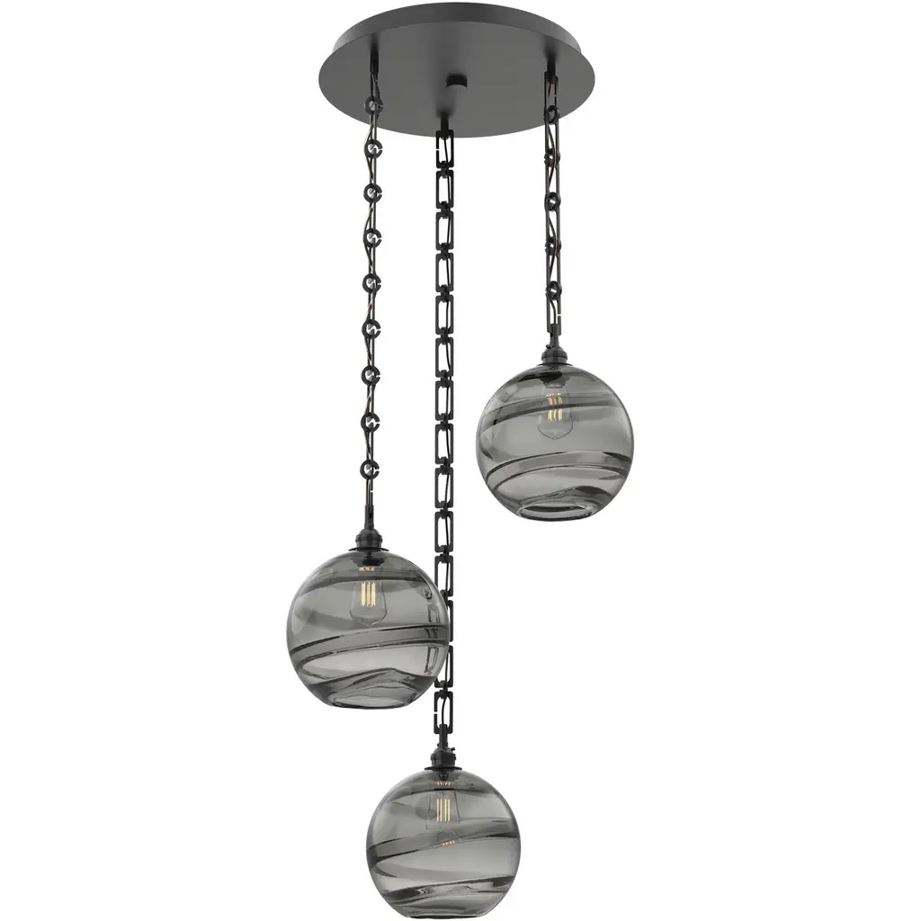 The Nebula Aster Round Pendant Chandelier features softly undulant 10D round shades in artisan blown crystal glass with an E26 base that takes one 40W bulb. Suspension options include cloth-braided cord or handcrafted chain in three vintage-inspired styles.