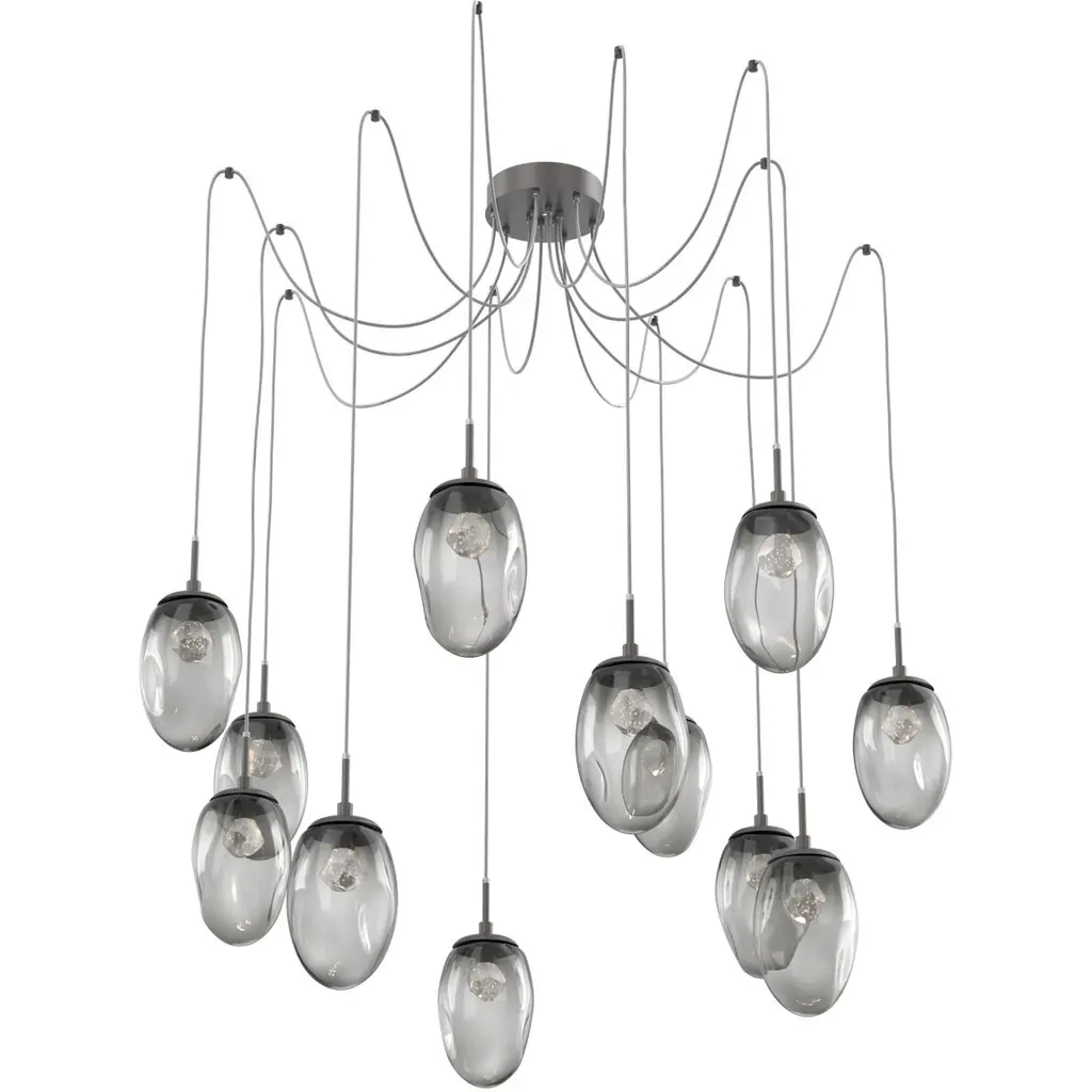 Featuring a softly undulant 10D round shade in artisan blown crystal glass that encloses an LED-illuminated cast crystal glass diffuser, this versatile chandelier style enables customization of the placement and height of each pendant. Choose from several glass colors and diffuser styles. For a more traditional look, order with an E26 base that takes one 40W bulb.