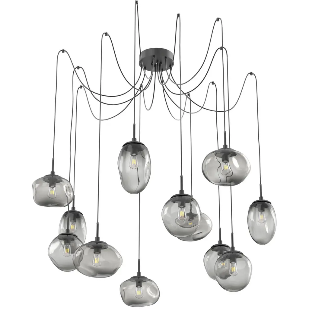 Aster Led 18.7 Inch Matte Black Swag Multi-Pendant Ceiling Light In 3000k Led, Zircon Inner - Smoke Outer