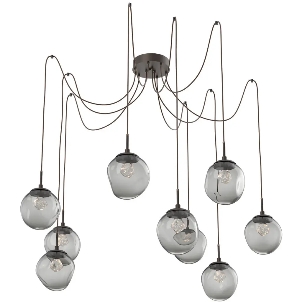 Featuring a softly undulant 10D round shade in artisan blown crystal glass that encloses an LED-illuminated cast crystal glass diffuser, this versatile chandelier style enables customization of the placement and height of each pendant. Choose from several glass colors and diffuser styles. For a more traditional look, order with an E26 base that takes one 40W bulb.