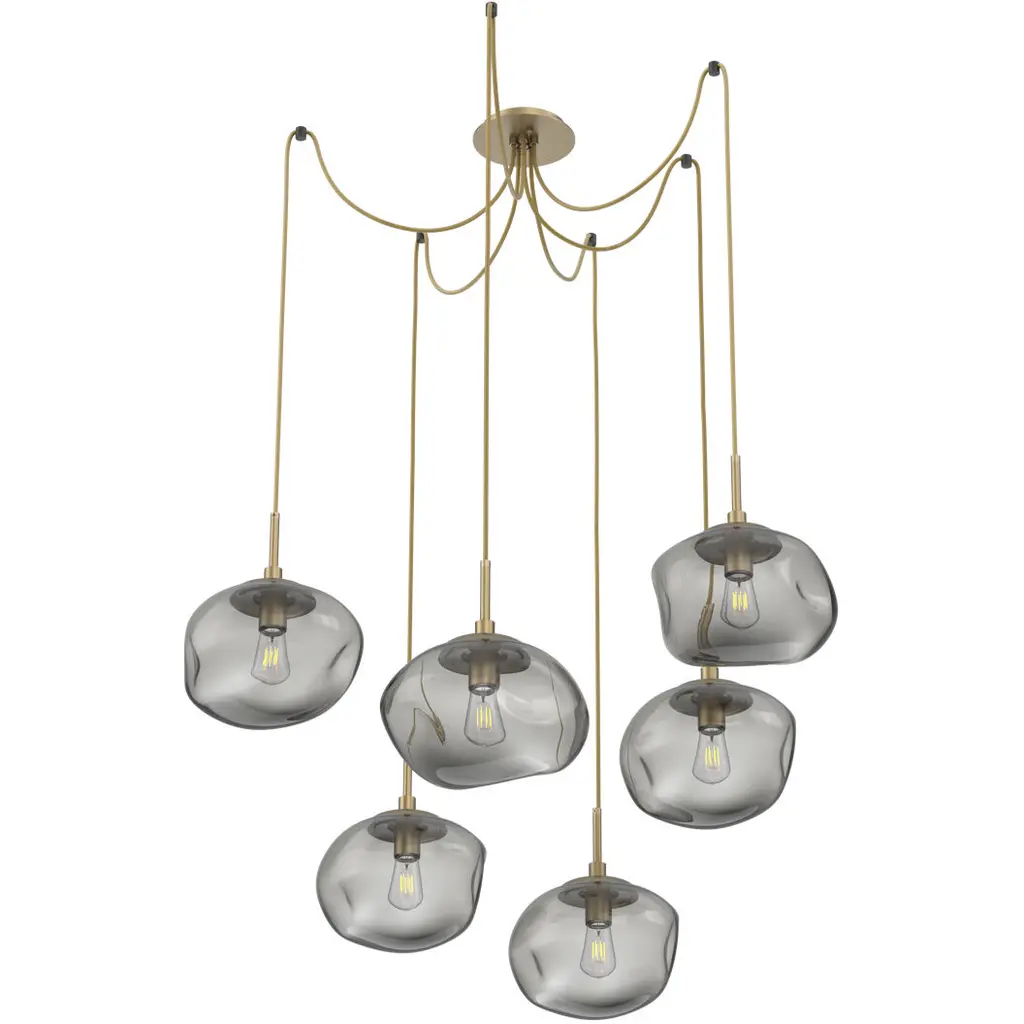 Aster Led 18.7 Inch Novel Brass Swag Multi-Pendant Ceiling Light In 2700k Led, Zircon Inner - Smoke Outer