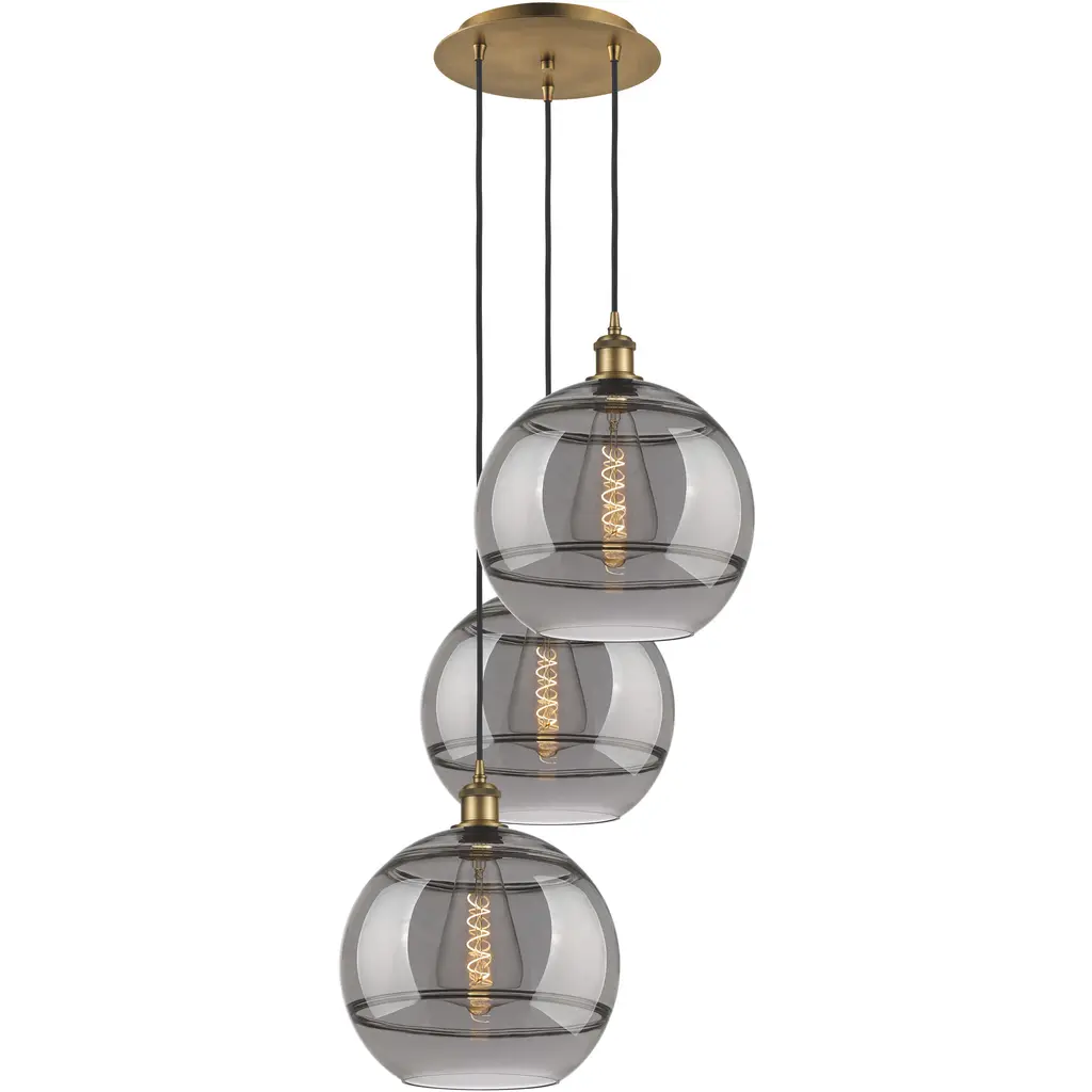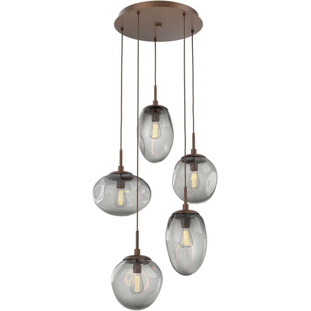 Aster Round Multi-Pendant-5PC-LED-Burnished Bronze-Zircon Inner - Smoke Outer-Cloth Braided Cord-LED 3000K