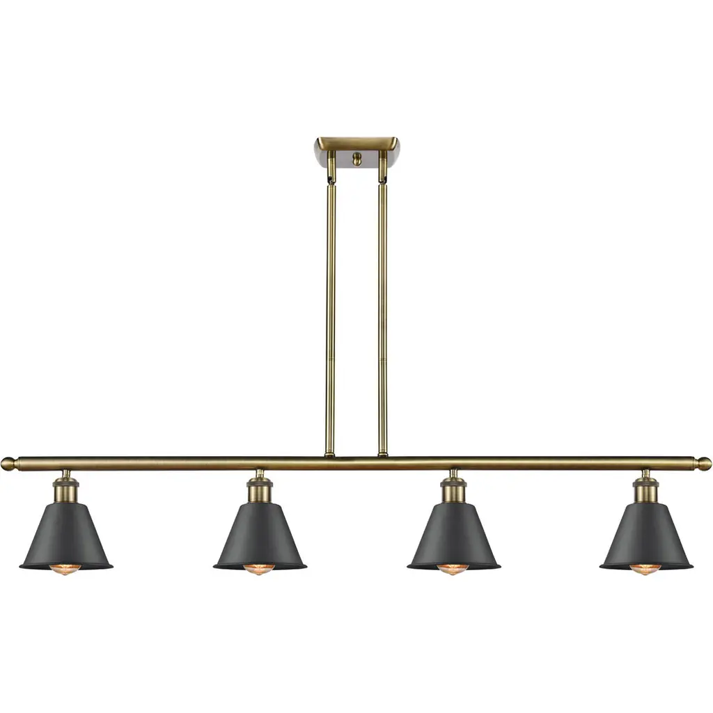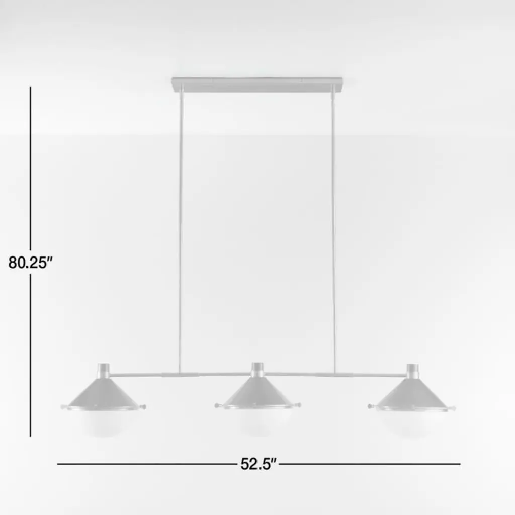 Our beautifully balanced Aster pendant suspends a trio of conical shades from an open, linear frame, all finished in dark pewter and burnished brass. The milk glass shades diffuse light while offering cool contrast to the warm metallic finishes. Hang the three-light pendant over a table or island to add an element of antique industrial beauty to the kitchen or dining room. For a unified look, install the coordinating single-light pendant.