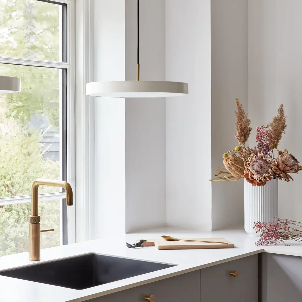 With its flying saucer likeness, Asteria Pendant from Copenhagen's Umage brings outstandingly even illumination in its hovering wake. In powder-coated steel, the floating disc has a narrow profile and comes in half-a-dozen hues for a pop of color (or essential white and black). An integrated, flat-panel LED provides clean and bright light and is fully dimmable, making Asteria more than apropos for both residential and commercial spaces.