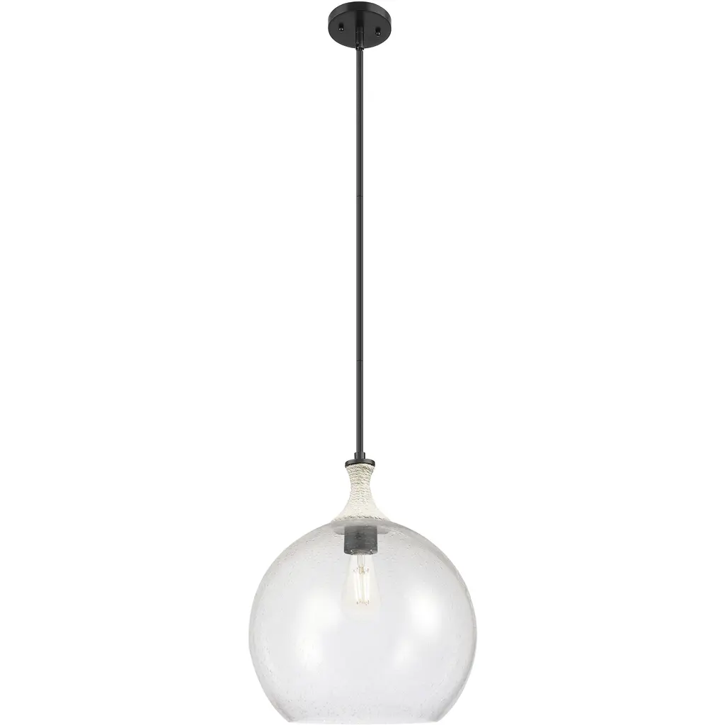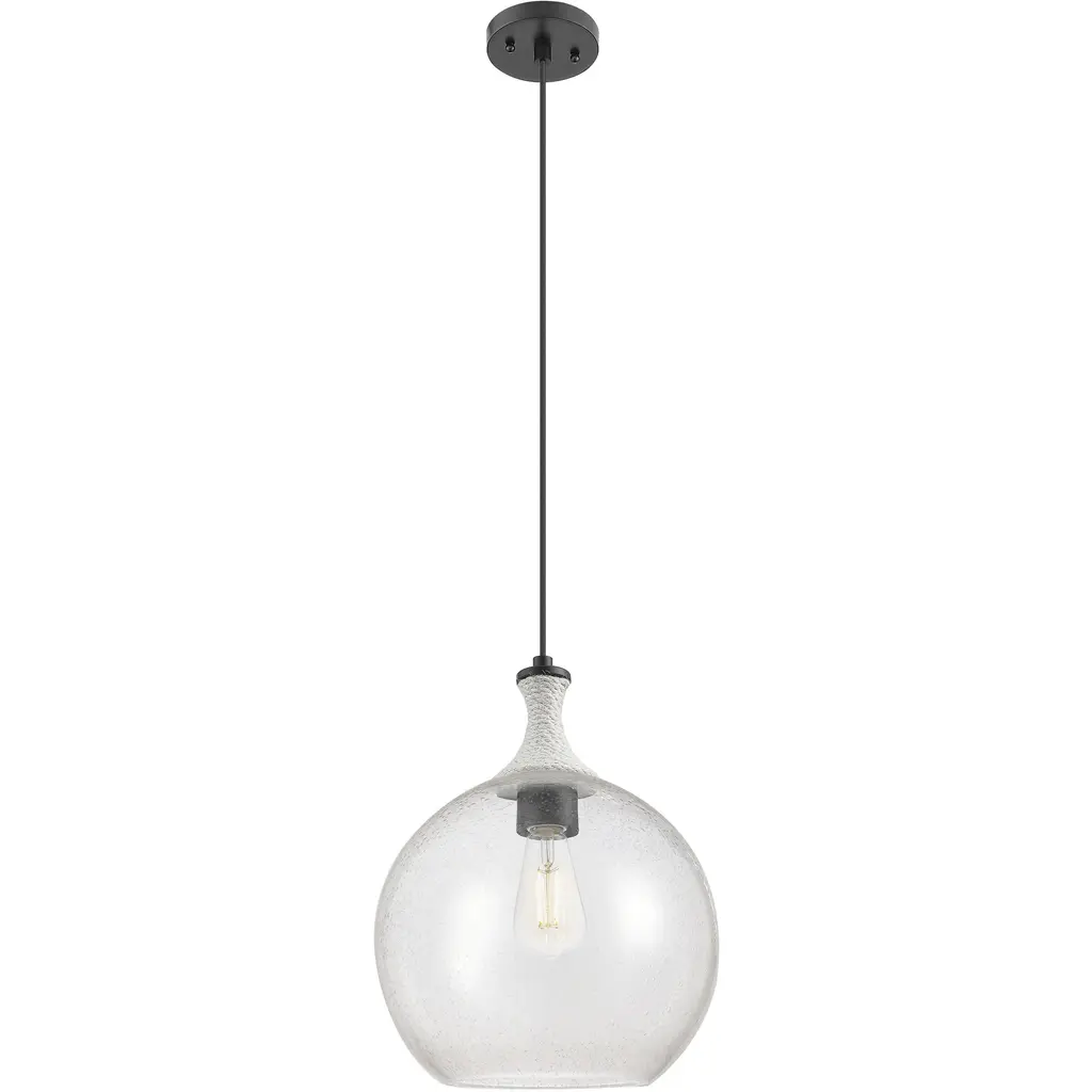 Astor 1 Light 14 Inch Matte Black Pendant Ceiling Light In Seedy Glass