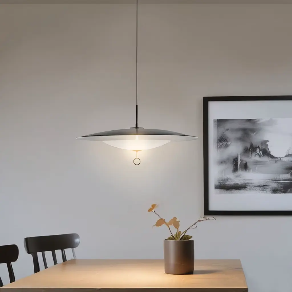 The Astra blends nostalgia with contemporary design, making it a stylish statement piece for any space. Crafted from high-quality metal with a sleek black and ivory glossy finish, it serves both function and aesthetic appeal. Perfectly suited for hanging above a dining table or in modern living areas, it adds timeless elegance that complements both traditional and contemporary decor. The bulb is not included.