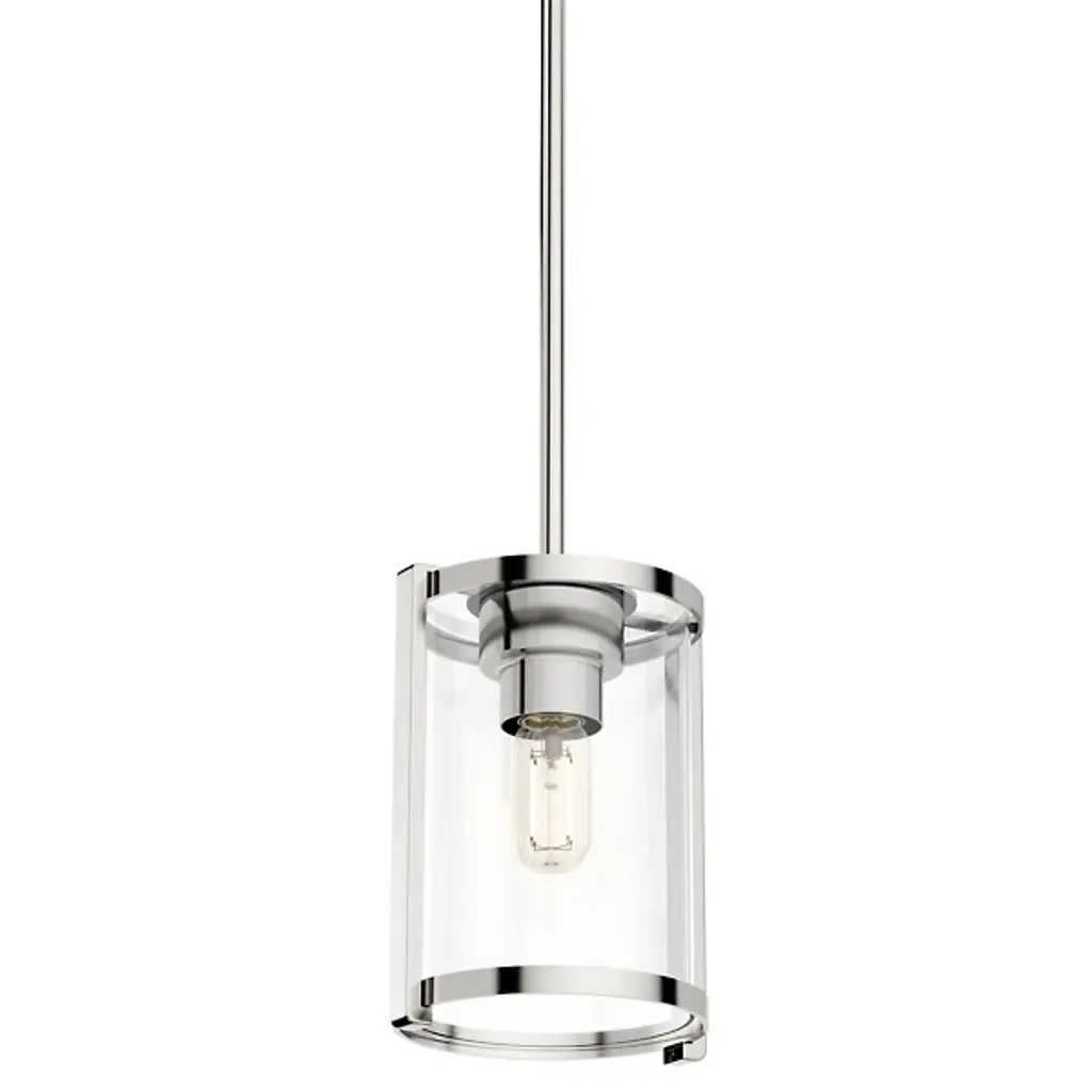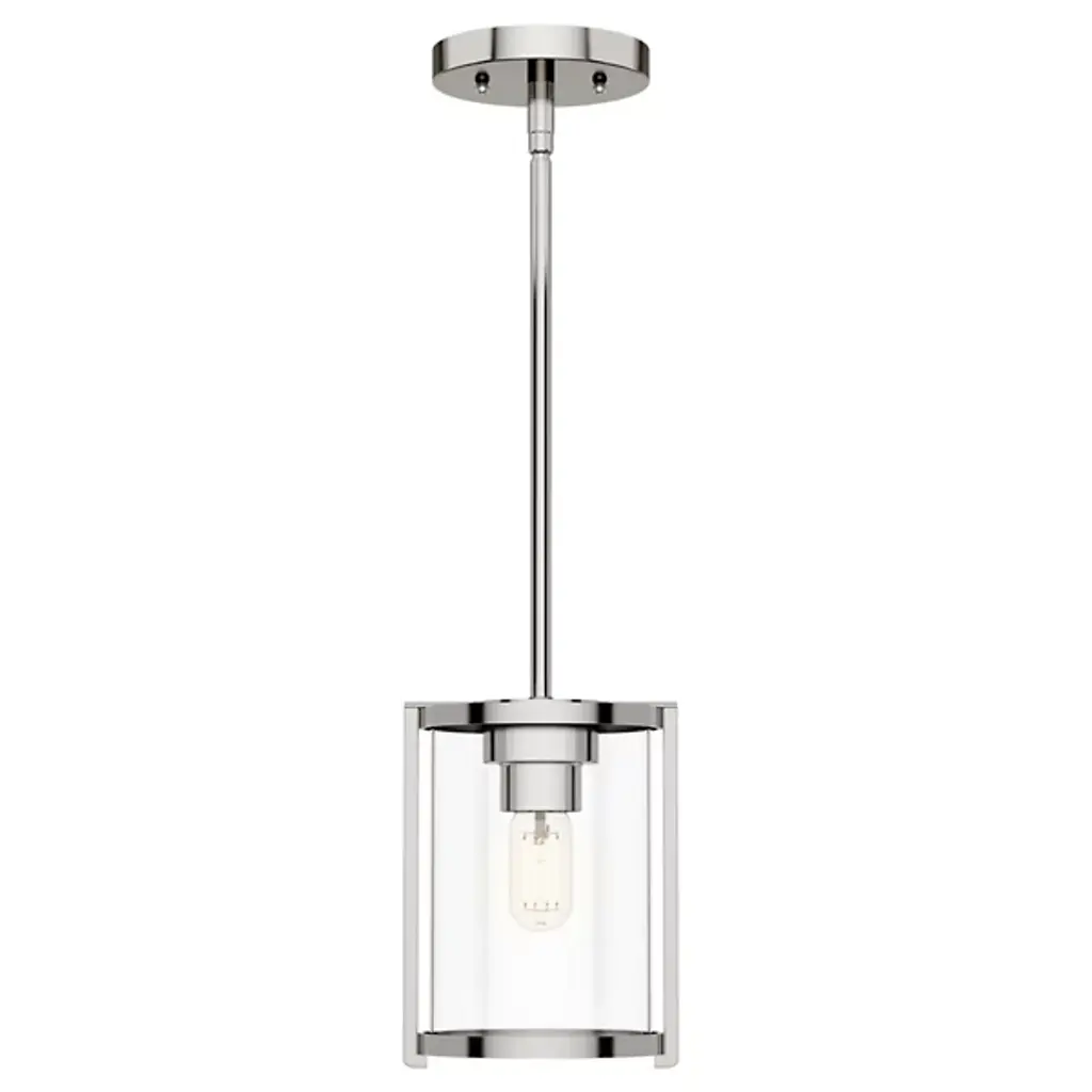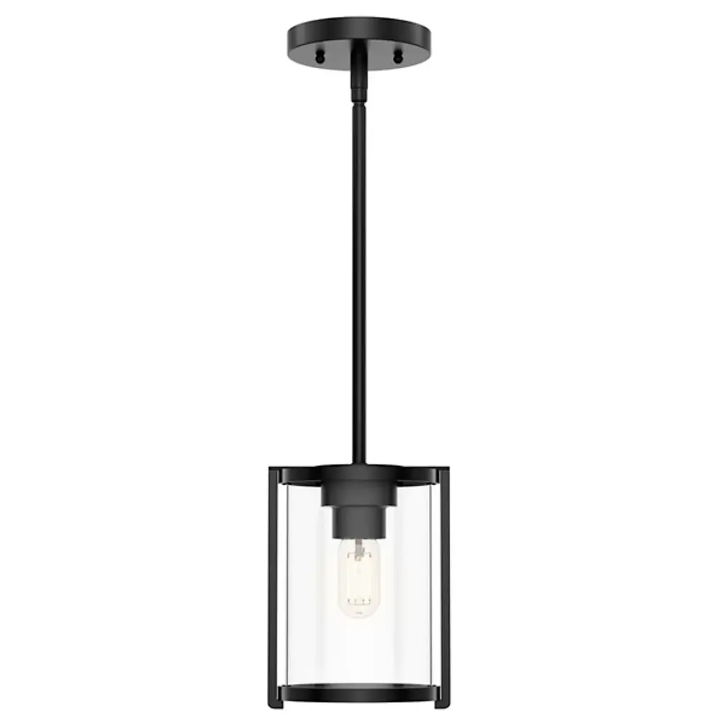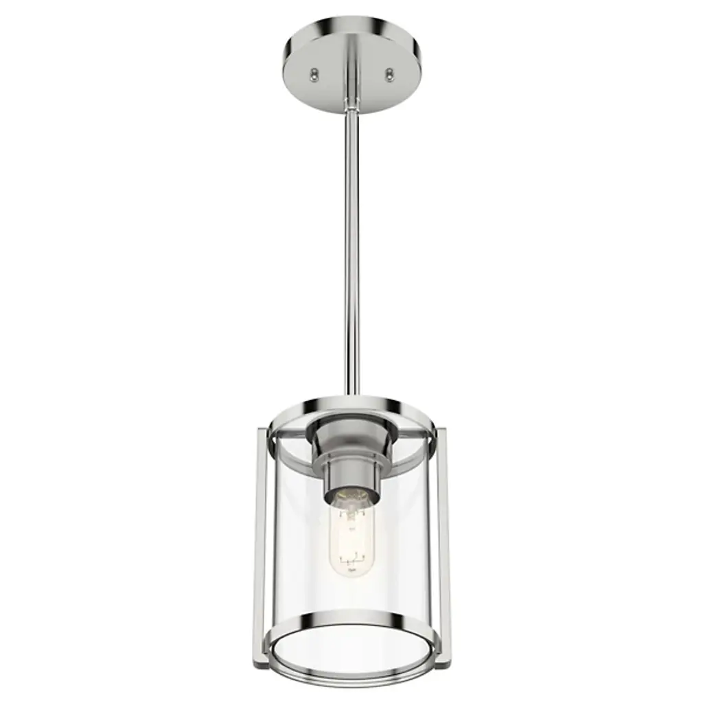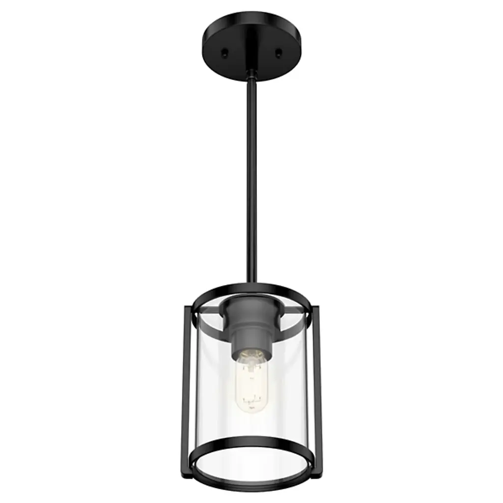 Elevate the look of a modern home with the simple elegance of the Astwood Mini Pendant by Hunter Fans. Clean metal lines form its circular framing, surrounding a single incandescent bulb at its center. The framework supports a clear glass shade that forms a clean cylinder around the lamping and allows for easy, glare-free illumination. Dropped by a slender metal downrod from a circular canopy, this piece is perfect when used in evenly spaced multiples over a kitchen island or dining table.