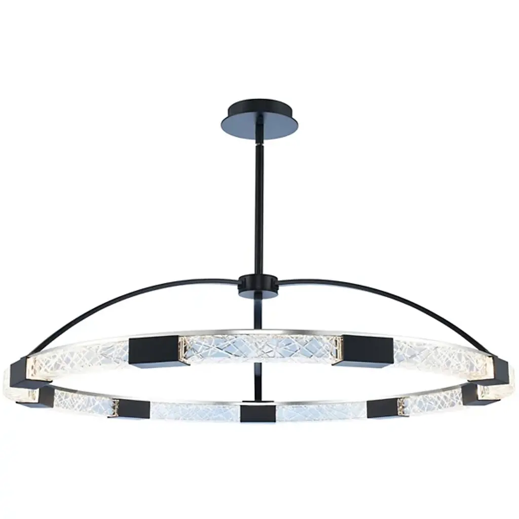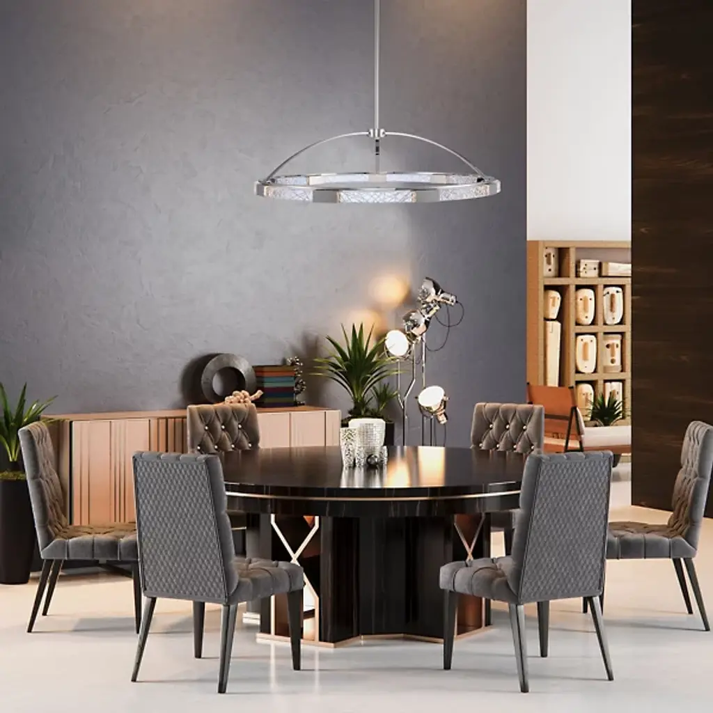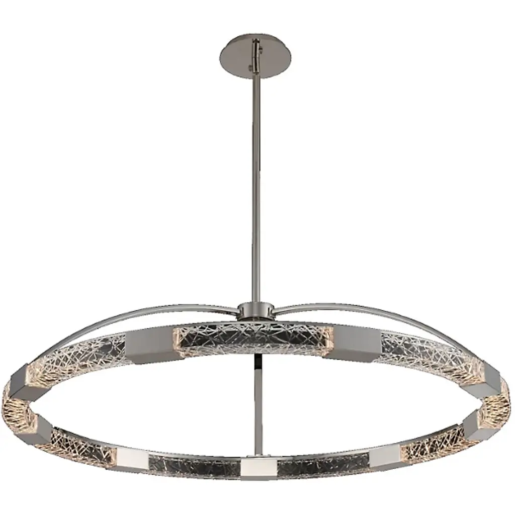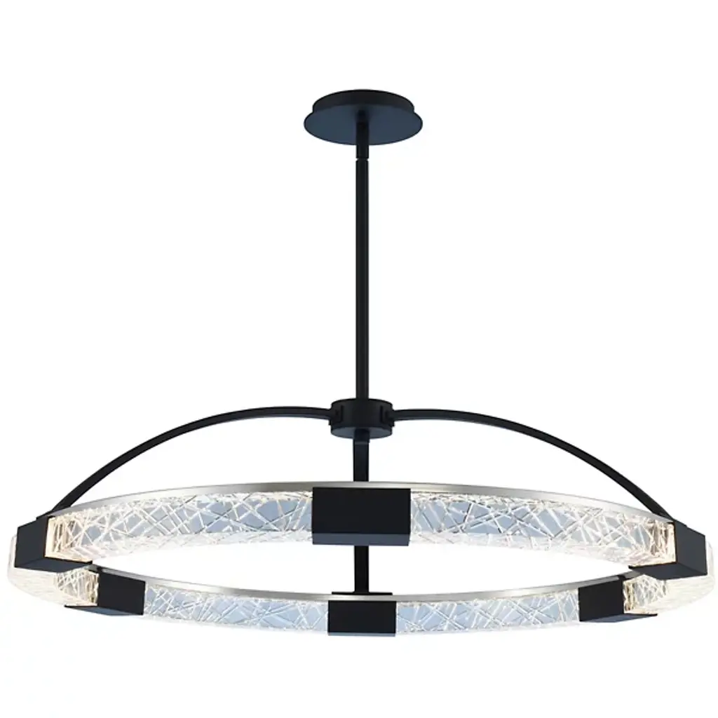 A ring of dazzling light elevates your modern space with the Athena LED Pendant from Allegri by Kalco Lighting. An unassuming ceiling mount flares out slightly before introducing a slim downrod that branches out into a trio of swooping arms that lead to smooth brackets that wrap around the glass body. A crisp ring made of hand-cut Firenze crystal makes up the breath-taking body of this modern piece. When turned on, subtle crosscut lines within the crystal come to life and enchants as an energy-efficient LED brings a bright, pleasing glow into the space.
