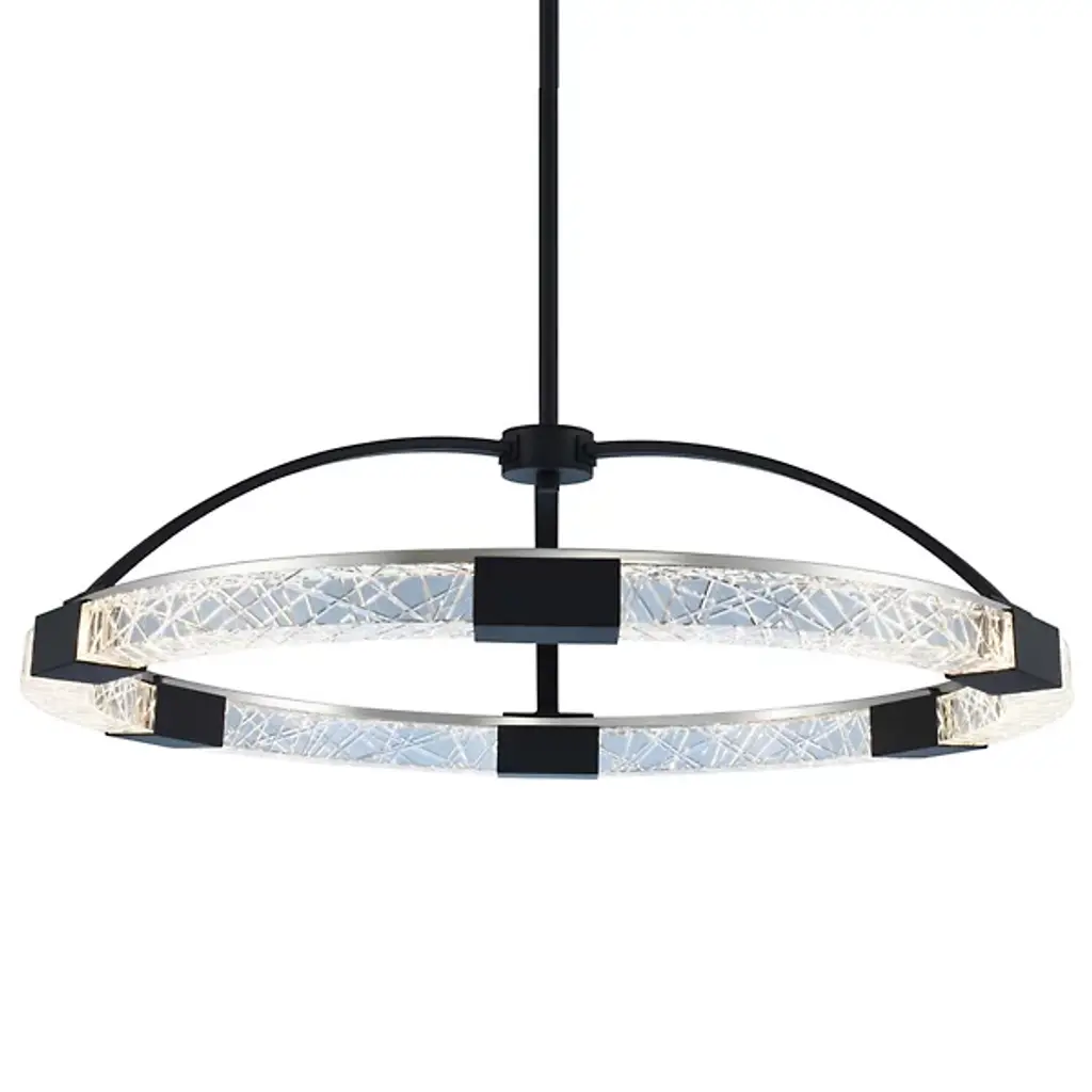 A ring of dazzling light elevates your modern space with the Athena LED Pendant from Allegri by Kalco Lighting. An unassuming ceiling mount flares out slightly before introducing a slim downrod that branches out into a trio of swooping arms that lead to smooth brackets that wrap around the glass body. A crisp ring made of hand-cut Firenze crystal makes up the breath-taking body of this modern piece. When turned on, subtle crosscut lines within the crystal come to life and enchants as an energy-efficient LED brings a bright, pleasing glow into the space.