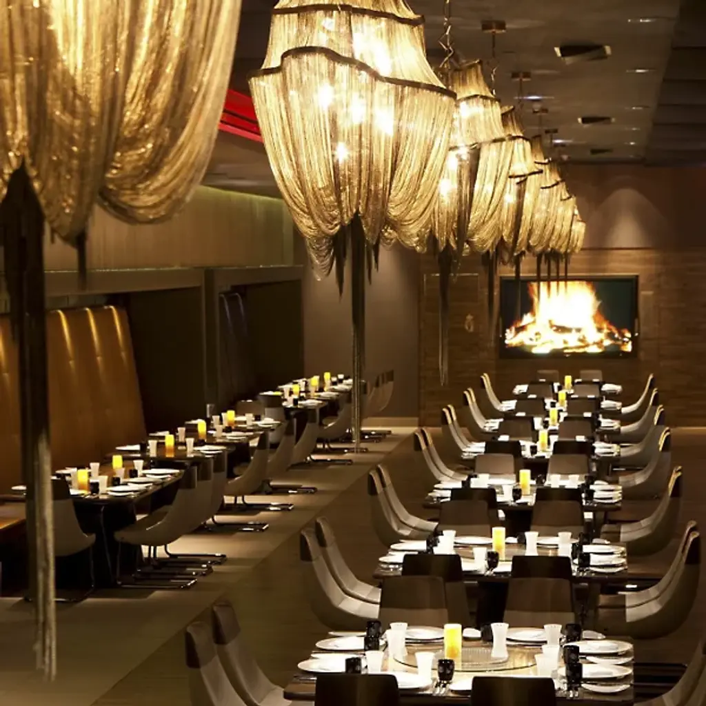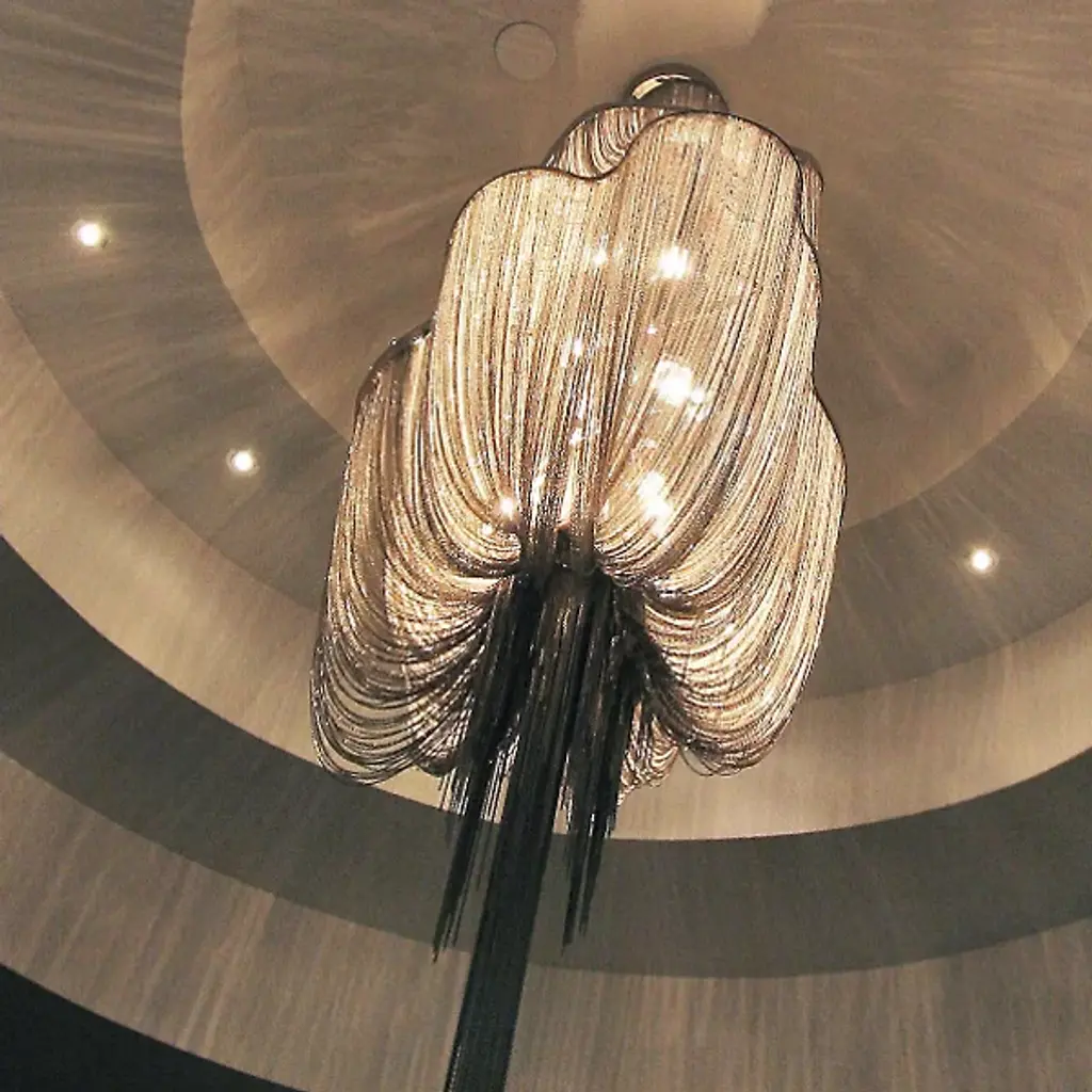 The legendary underwater city of Atlantis inspired the altogether fluid design of the Terzani Atlantis 3-Tier Suspension. The shade dramatically replicates the movement and shimmer of ocean waves with numerous delicate hand-crafted chains (several miles worth, in fact) draped by hand from the wavy frame. Available in three sizes and a range of finishes. Designed by Barlas Baylar.