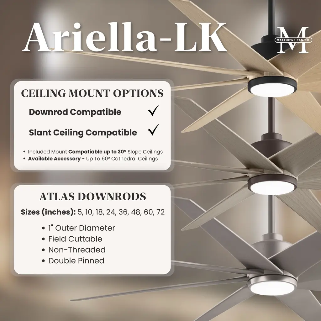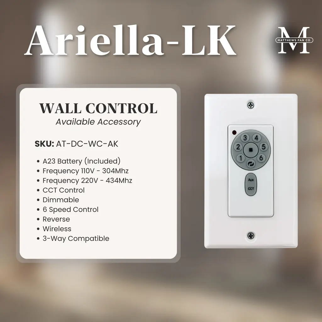 Elevate your space with the Ariella celing fan, a contemporary styled centerpiece boasting an eight-blade design for superior air flow and sophistication. Engineered for wet location, Ariella offers a color changing light kit, five motor finishes and seven blade finishes to complement any decor in any setting. The perfect medley of options gives you the choice and range from sleeka nd modern to warm and rustic.