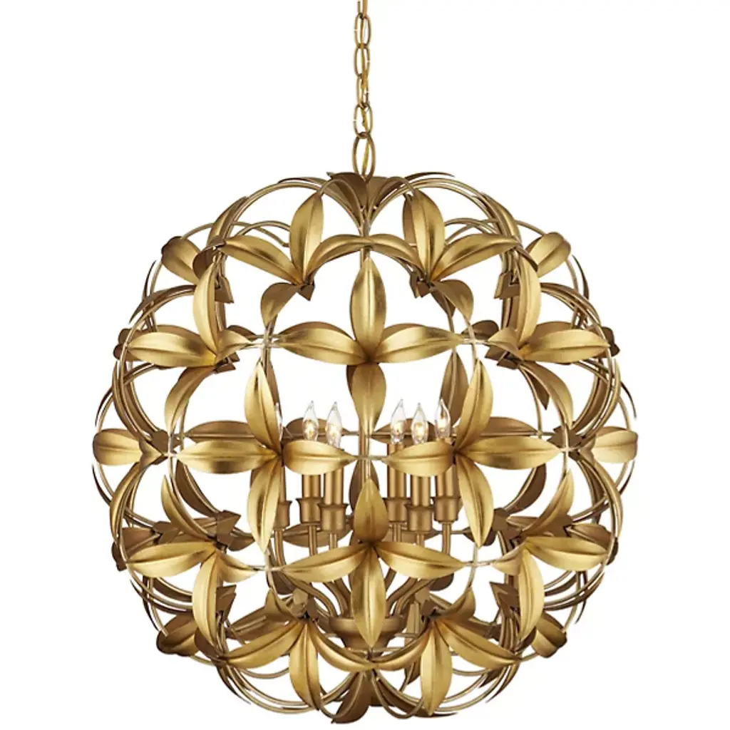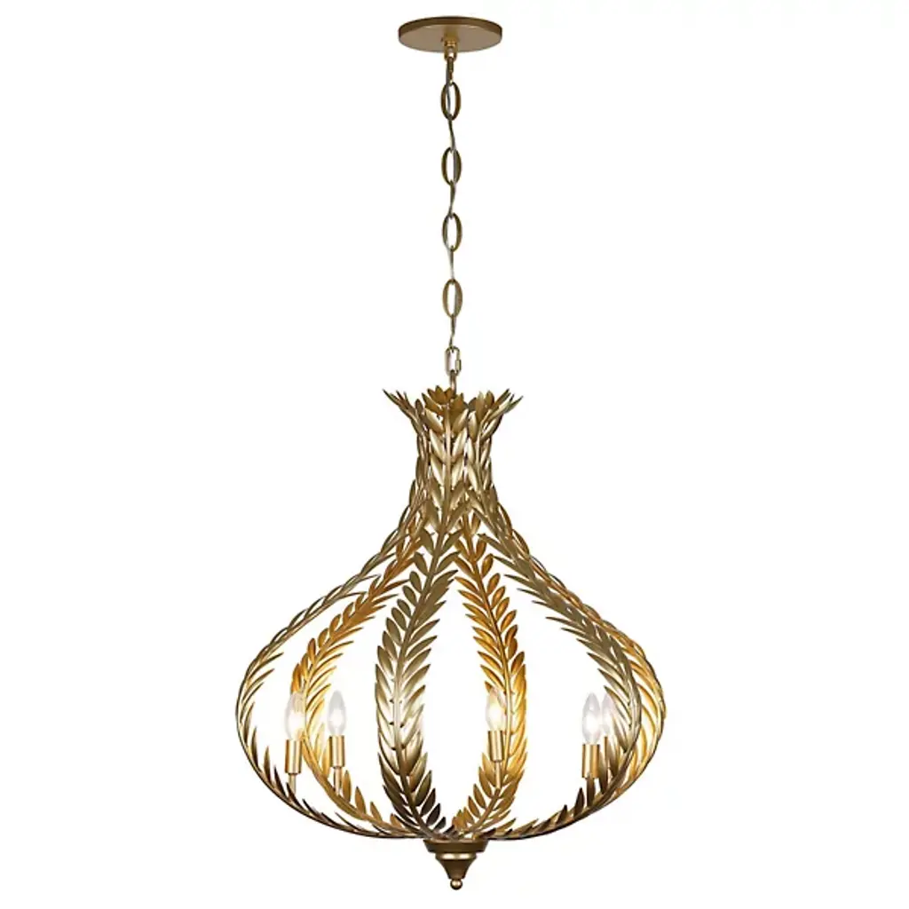 The Atlas Pendant from Savoy House features a bold organic style, bringing a sense of natural elegance and artistry to any room it adorns. It was designed by Breegan Jane, an award-winning TV host and interior designer who was inspired by the enchanting spirit of the Mediterranean. The body of this fixture resembles olive branches, finished in hand-applied Grecian Gold for a touch of refinement. This pendant & 39s graceful and organic look makes a striking statement with sophisticated, bohemian appeal.