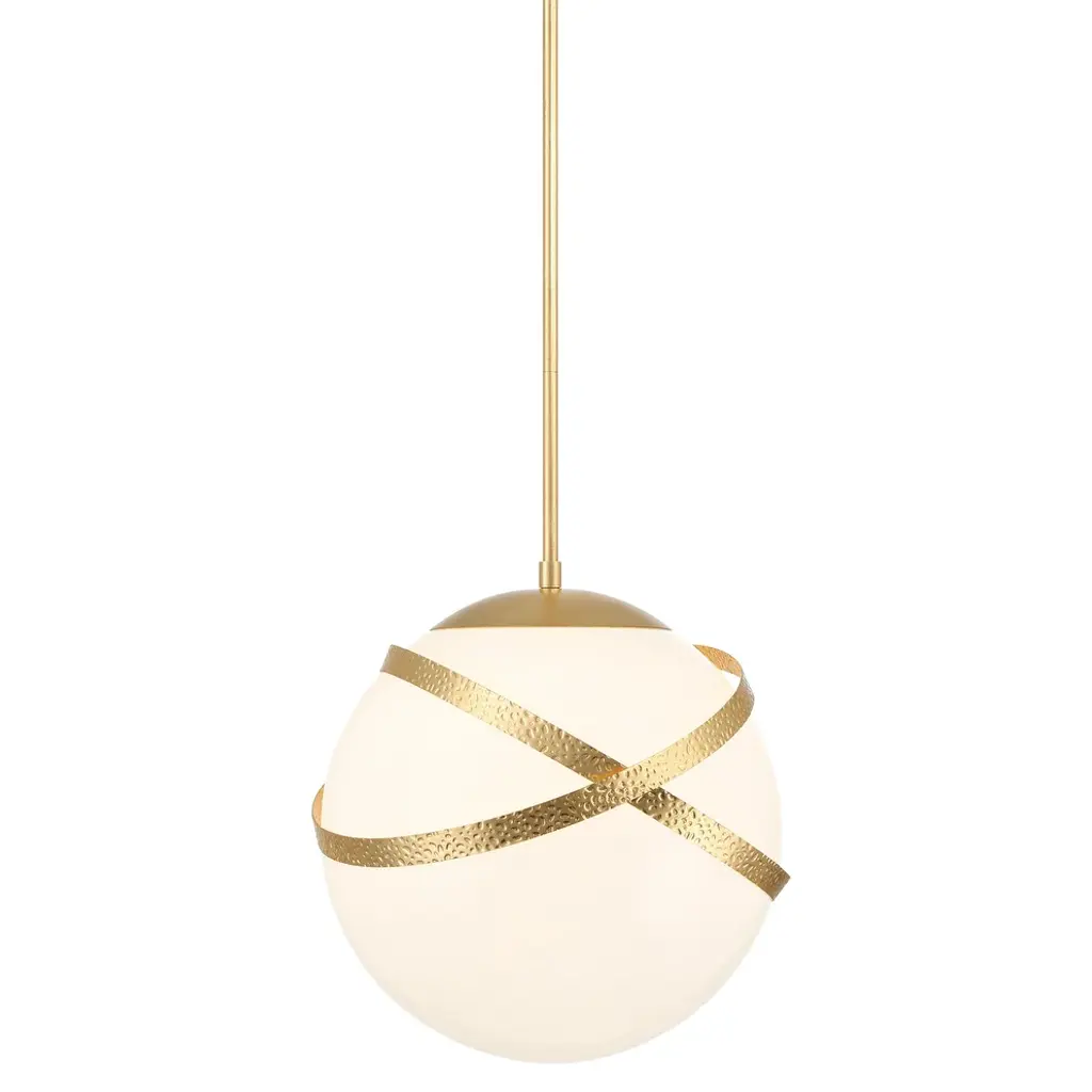 Bring artistic emphasis to your spaces with the sculptural allure of the Atlys Mini Pendant by Minka-Lavery. This striking pendant features a sleek downrod and a disc-like collar that supports wet-listed lamping. The minimalist frame is enhanced by hammered metal hoop accents, creating a subtle contrast against the smooth opal glass shade. Designed to diffuse light gently, the rounded shade softens any direct brightness, casting a broad, even glow that washes its surroundings with warm, radiant light.