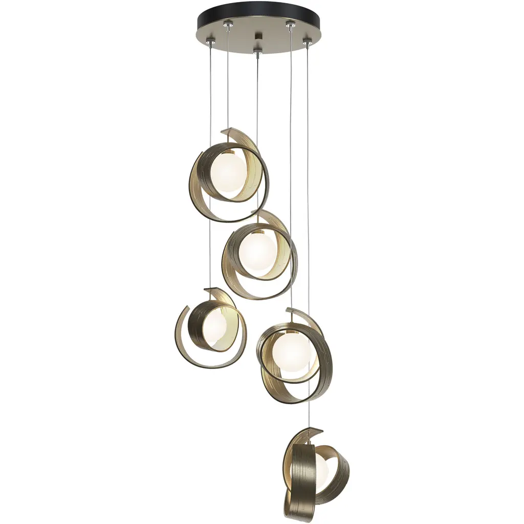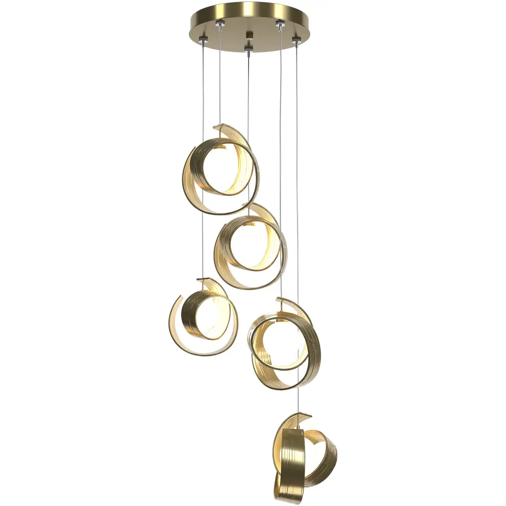 Enrich your space with the Atom three-pendant LED cluster, distinguished by a contemporary design featuring clean lines ideal for high ceilings, and enhanced by an illuminated canopy, providing both a modern aesthetic and ample illumination.