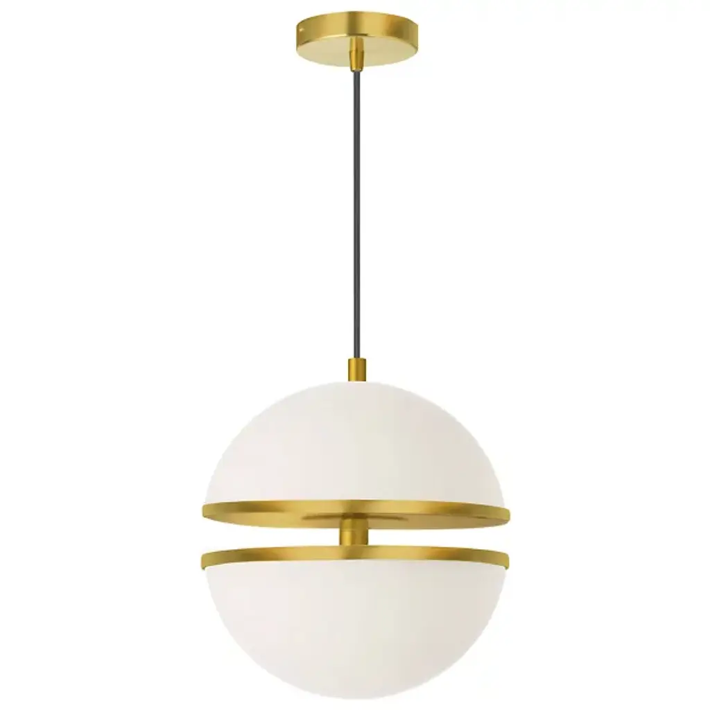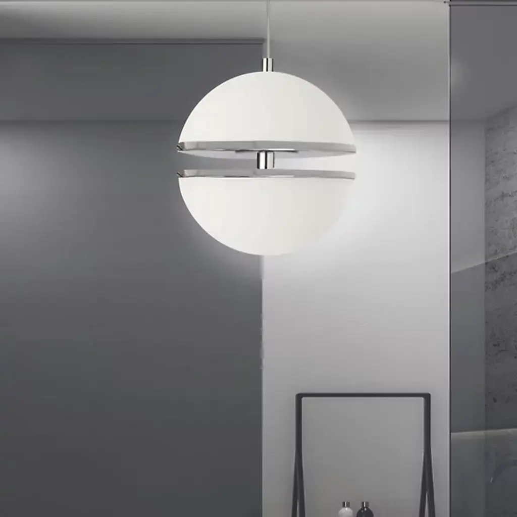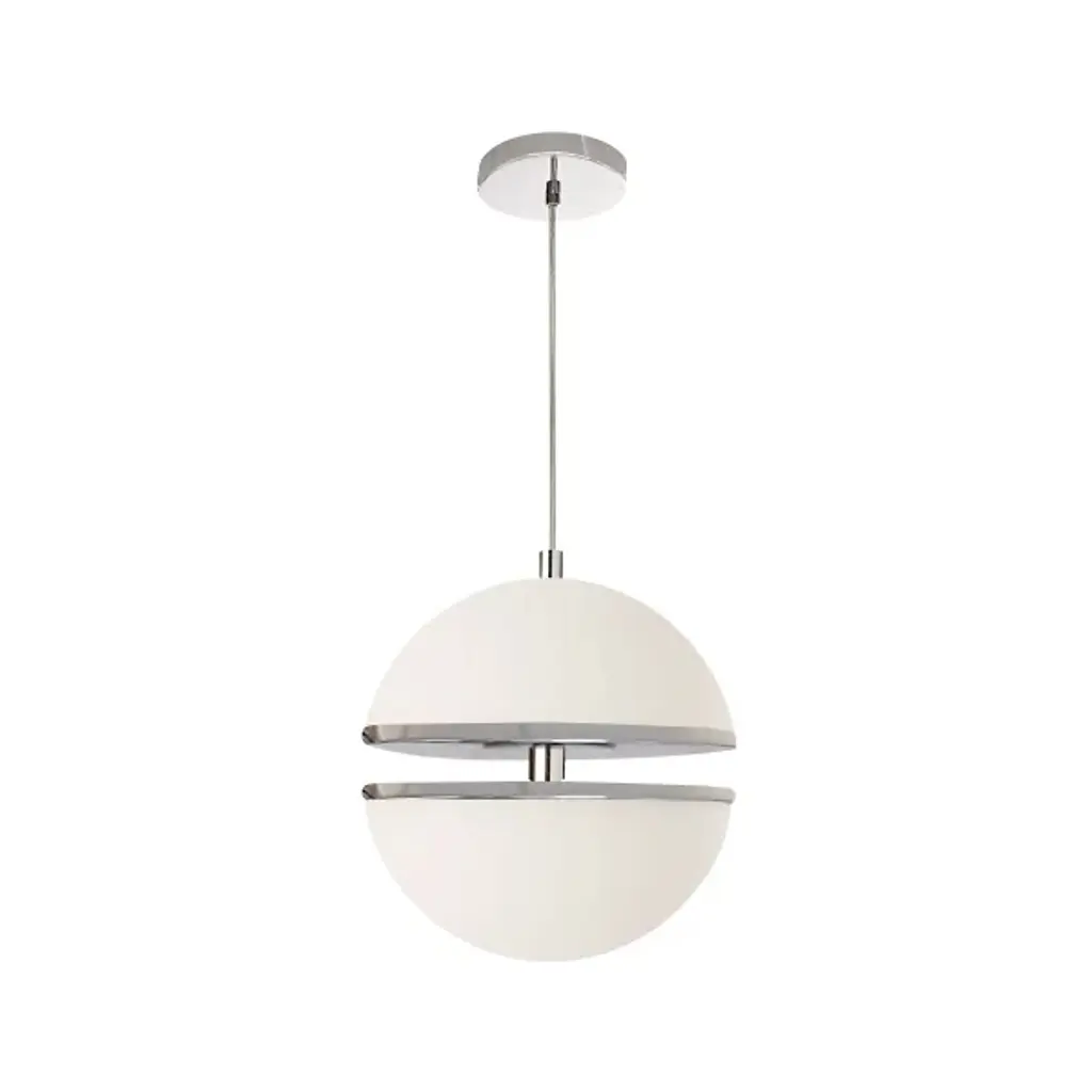 A radiant atom, splitting before your eyes. There’s no denying the beautiful physics of the Atomic LED Pendant from Dainolite. It’s the piece you want if you’re looking for great visual impact. It appears to defy the laws of gravity as it hangs with an ultra-fine cord. The compact, low-profile canopy makes the piece easy to mount on its own or in series. Creating an intriguing sense of movement, the piece slices in half a bright glass globe. Sleek metal trimmings accentuate the splitting action with modern sophistication. The two white glass domes double up the amount of light. Turn the piece on and receive a radiant upward and downward glow.