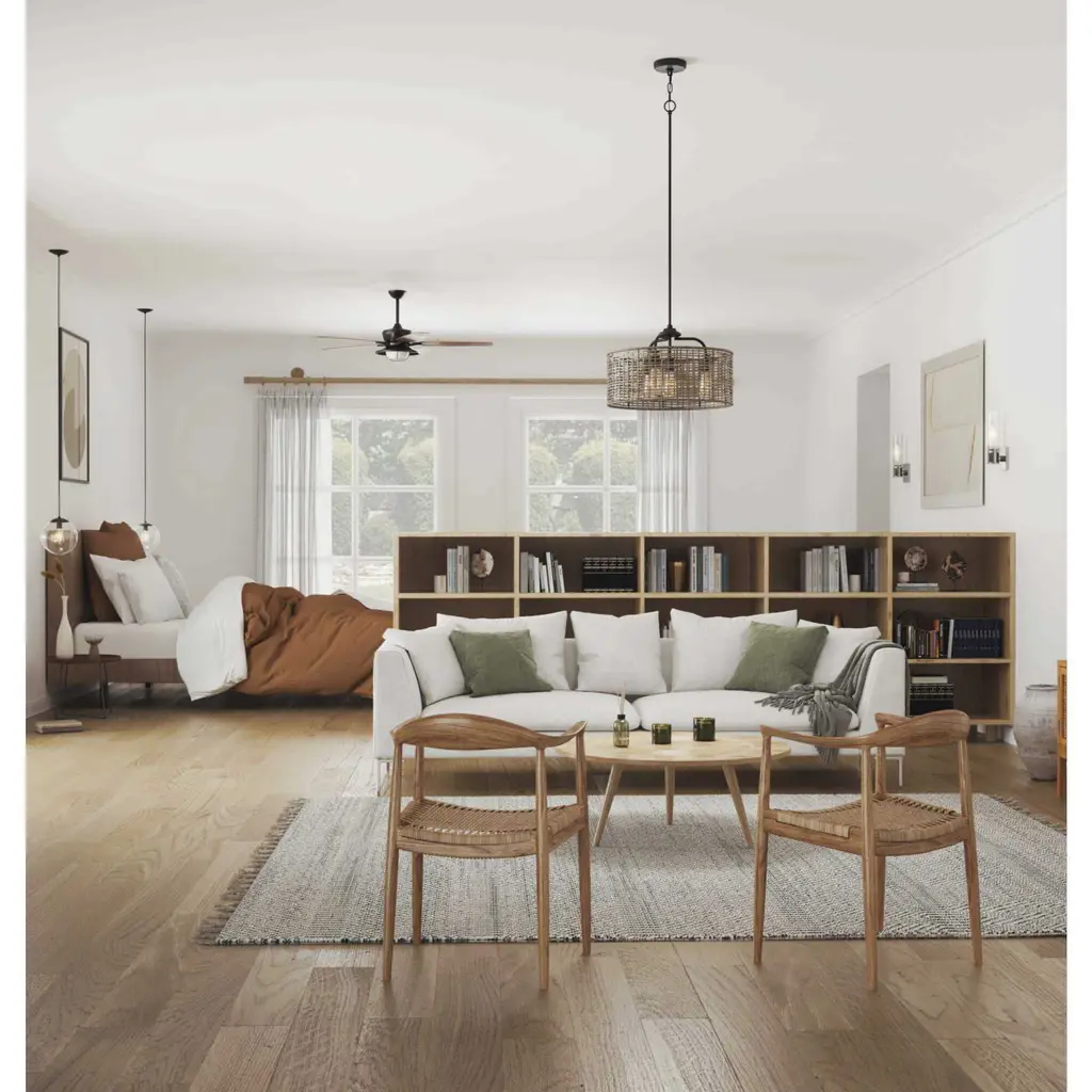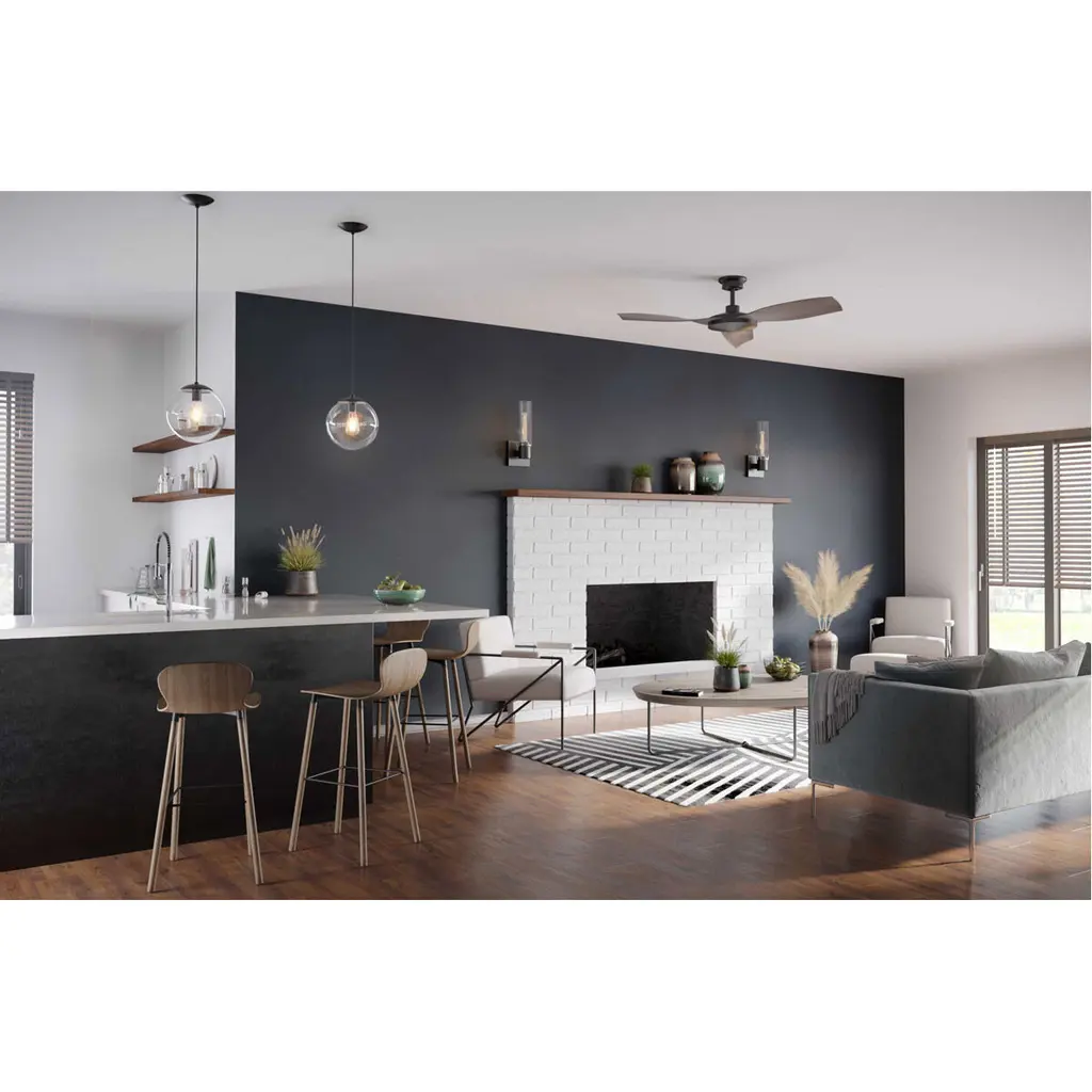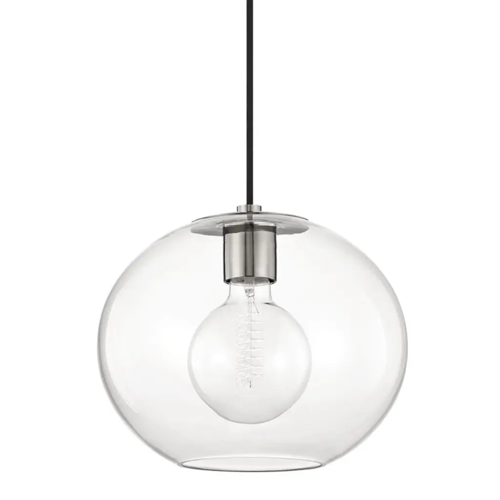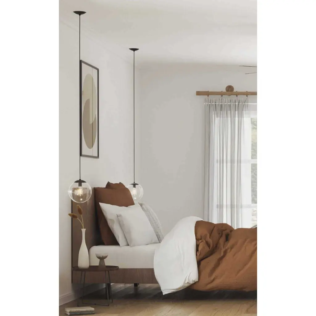 A light source glows from within a clear glass globe shade that fosters a soft and enduring design. The metal cap and light base are coated in a beautiful black finish that accentuates the hanging light's modern aesthetic. The light is suspended from a cloth cord that can be adjusted from height to meet your unique design needs.