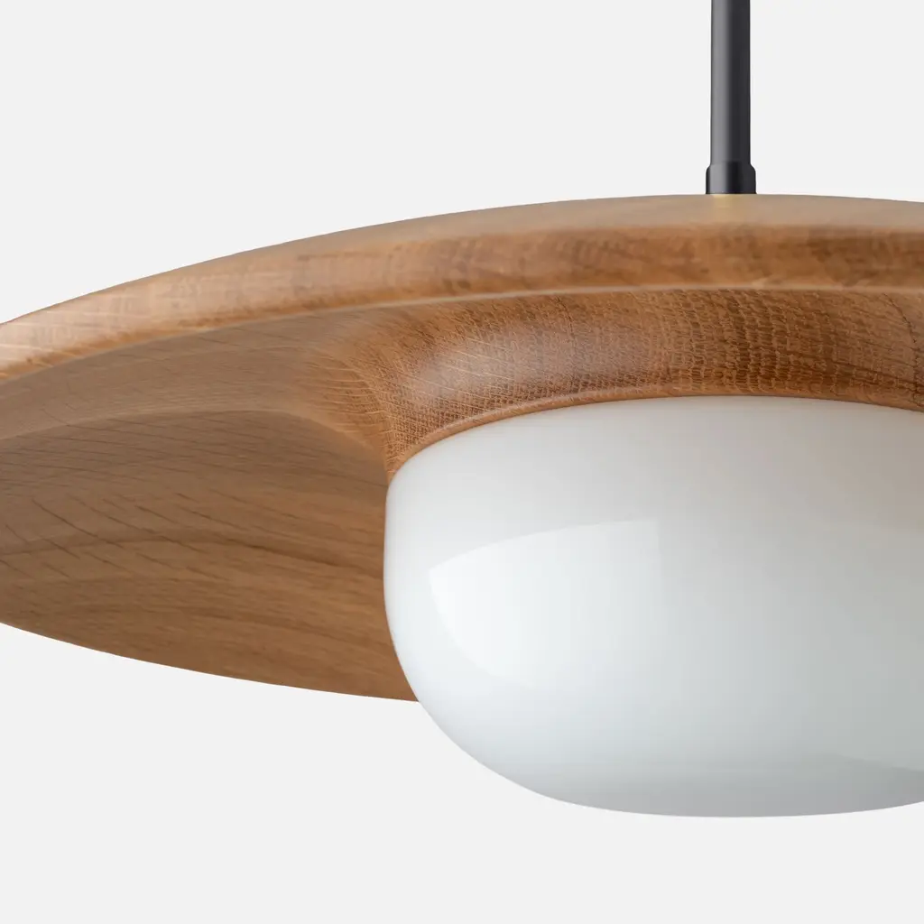 With its sensuous and beautiful mix of materials—oak shade, metal fixture, opal glass—the Atwood Pendant’s modern curved design lets you celebrate the natural beauty of the wood as it flows seamlessly into the warm glow of the opal glass shade. Shop the Atwood Lighting Collection.Read our guides on how to hang pendants and chandeliers and how to layer different types of lighting.Extended length options here.