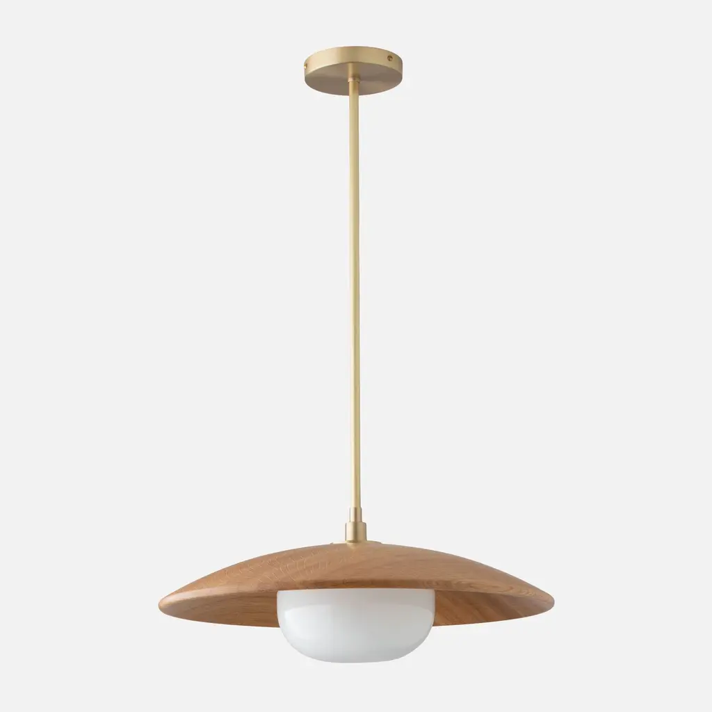 With its sensuous and beautiful mix of materials—oak shade, metal fixture, opal glass—the Atwood Pendant’s modern curved design lets you celebrate the natural beauty of the wood as it flows seamlessly into the warm glow of the opal glass shade. Shop the Atwood Lighting Collection. Read our guides on how to hang pendants and chandeliers and how to layer different types of lighting.
