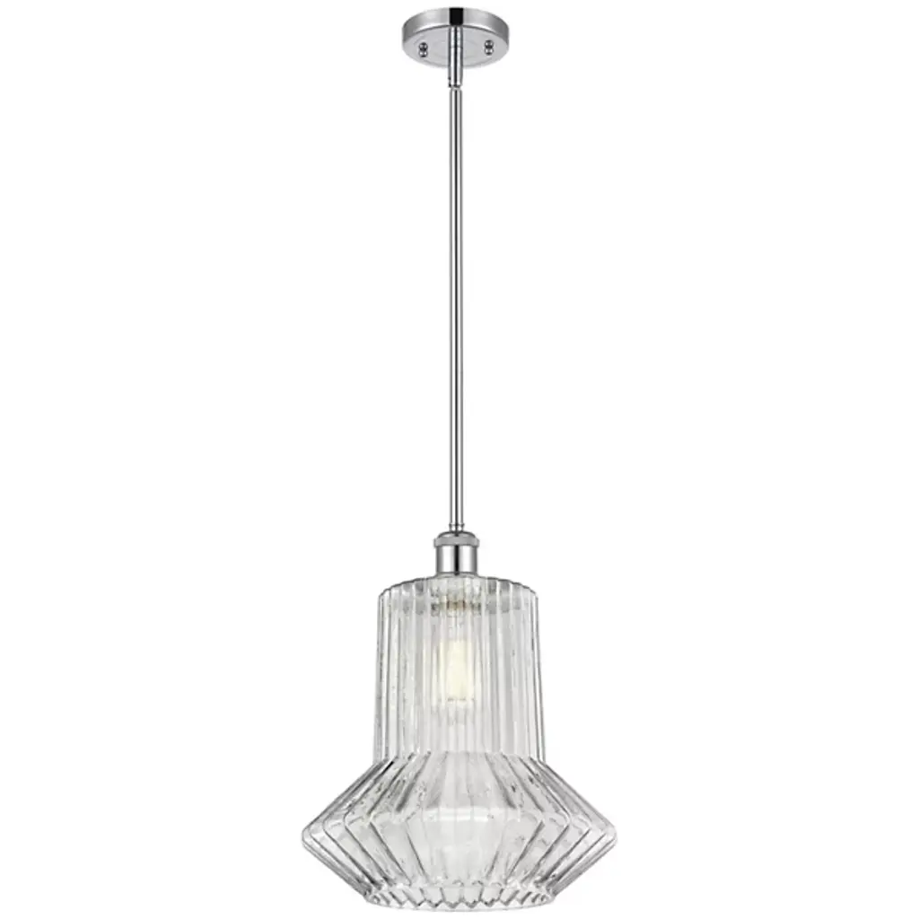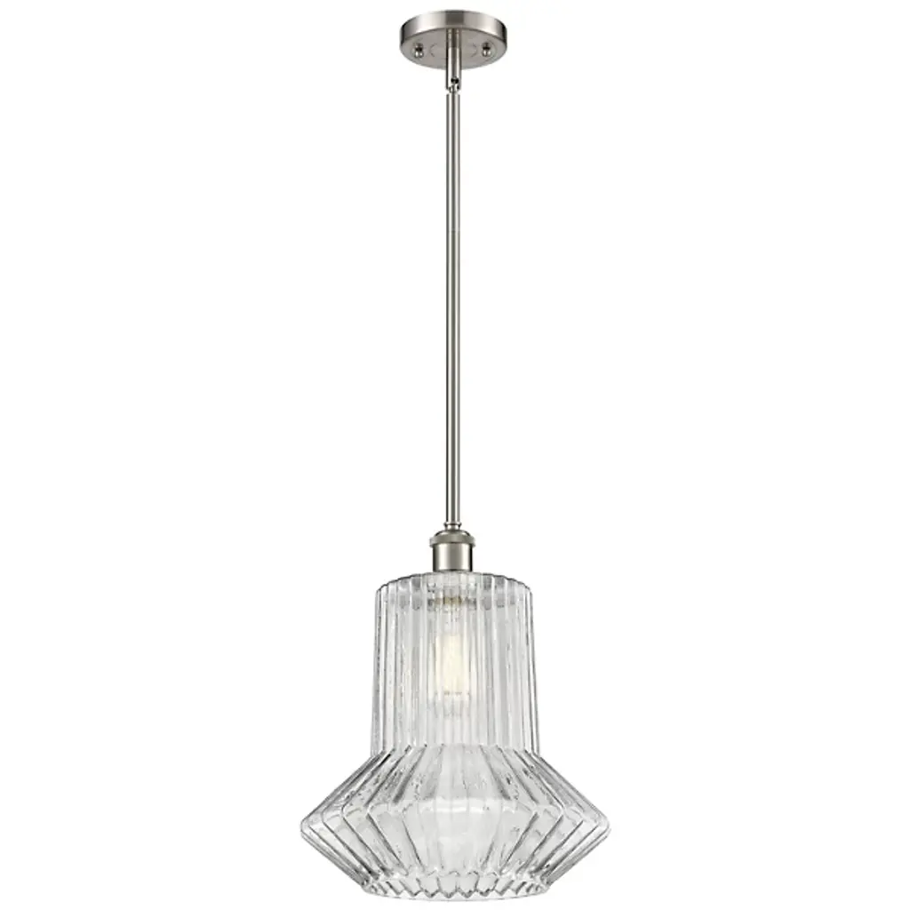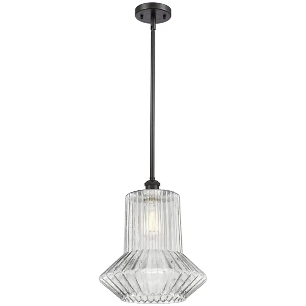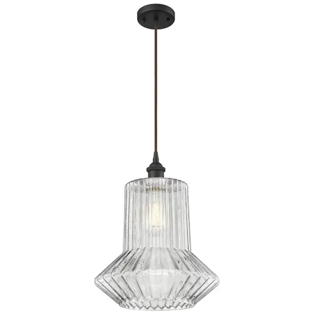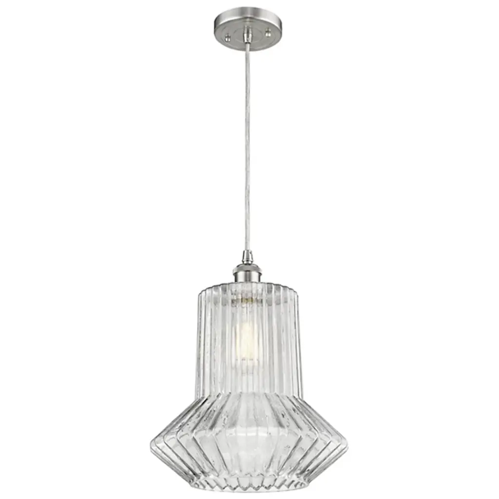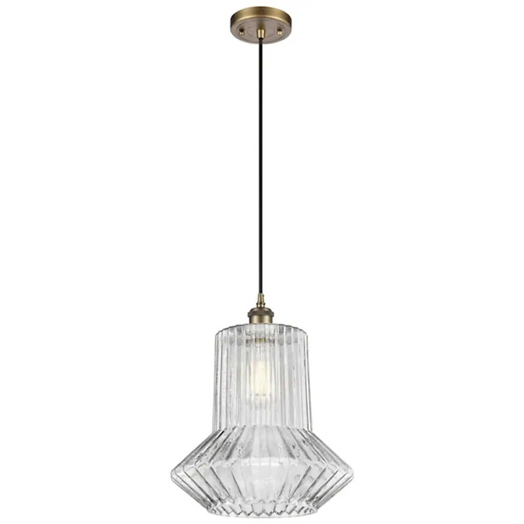 The Audan Mini Pendant by Alder & Ore brings beauty and ambient lighting to home or office lighting. Starting with the round cast brass ceiling plate, the pendant light showcases an industrial-style socket complete with knurled details. Stealing the show is the art deco-style fluted glass shade. When lit the pendant emits a warm ambient glow, with some reflective light play. This indoor pendant light complements many design styles and will elevate the lighting in a kitchen eating space, entryway, and dining room.