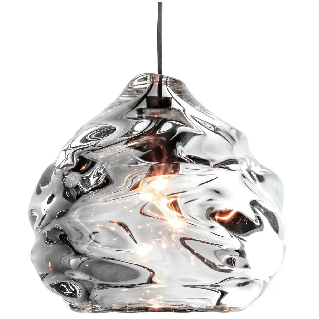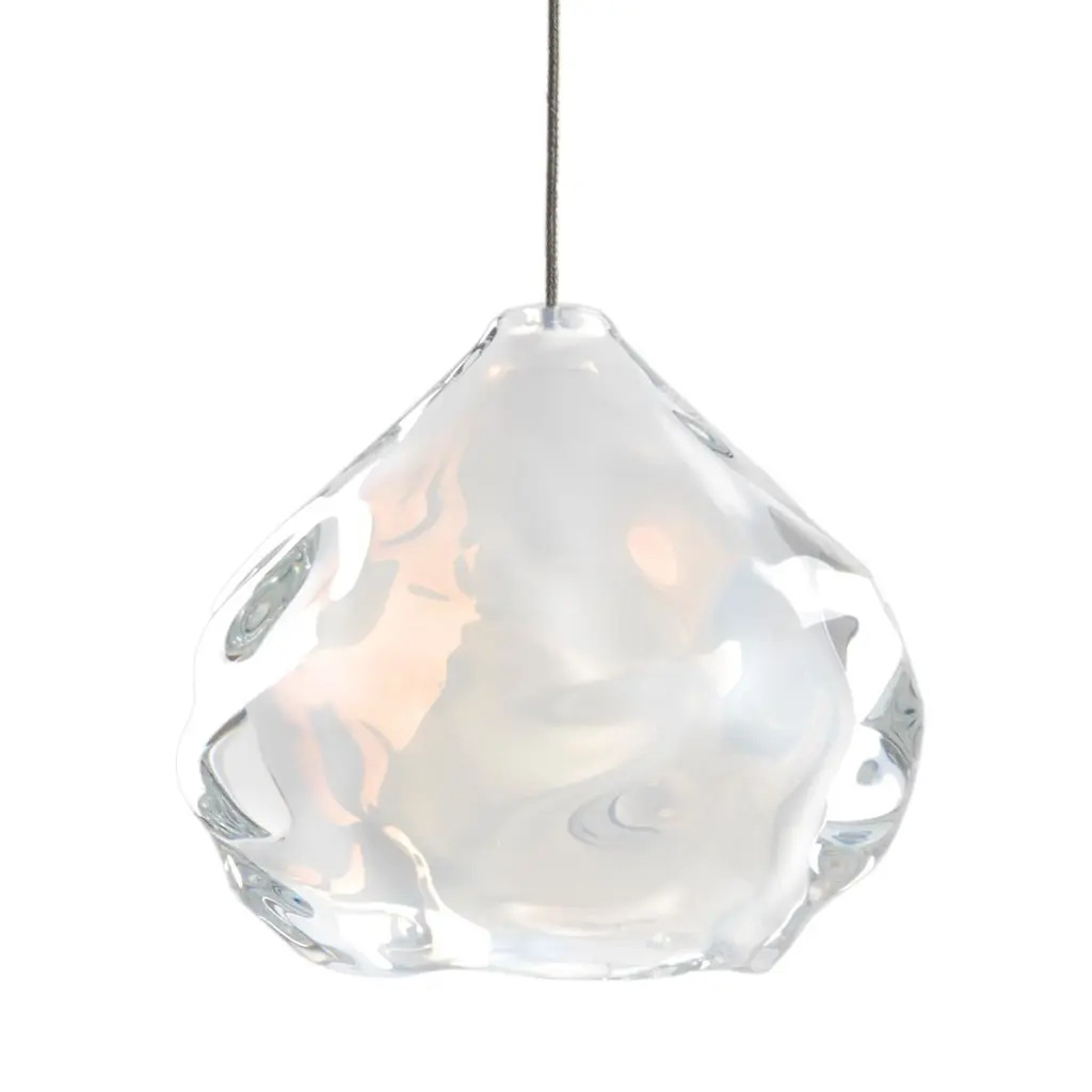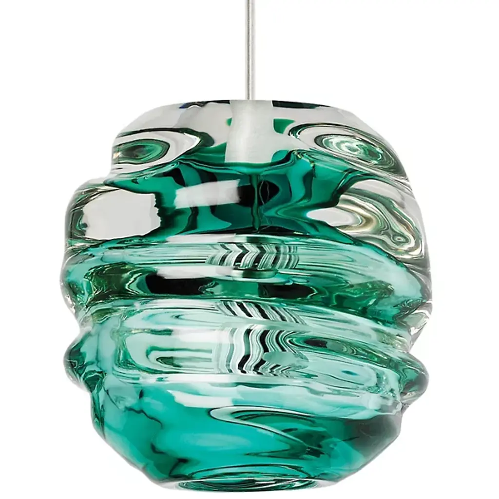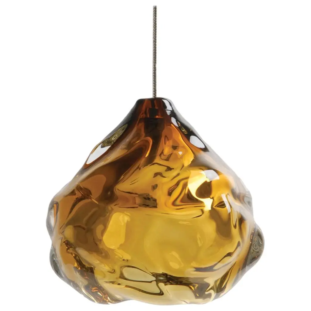 The Audra Mini Pendant by Visual Comfort Modern, formerly known as Tech Lighting, captures the essence of water with its thick, flowing glass and distorted lighting effect. Molded by Polish artisans to create an incredibly deep and rhythmic silhouette, the pendant’s undulating form fits over a single light source, bending and refracting light as though underwater. A stunning addition to counters and kitchen tables.