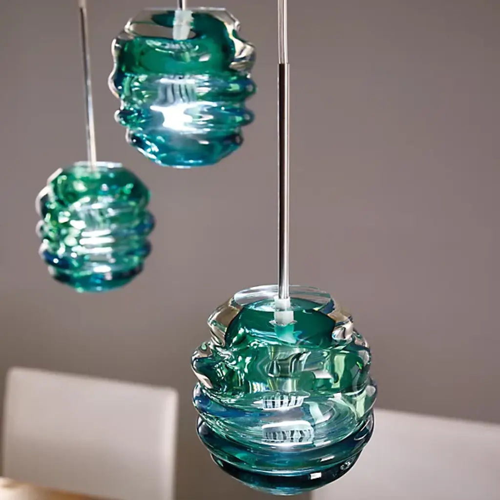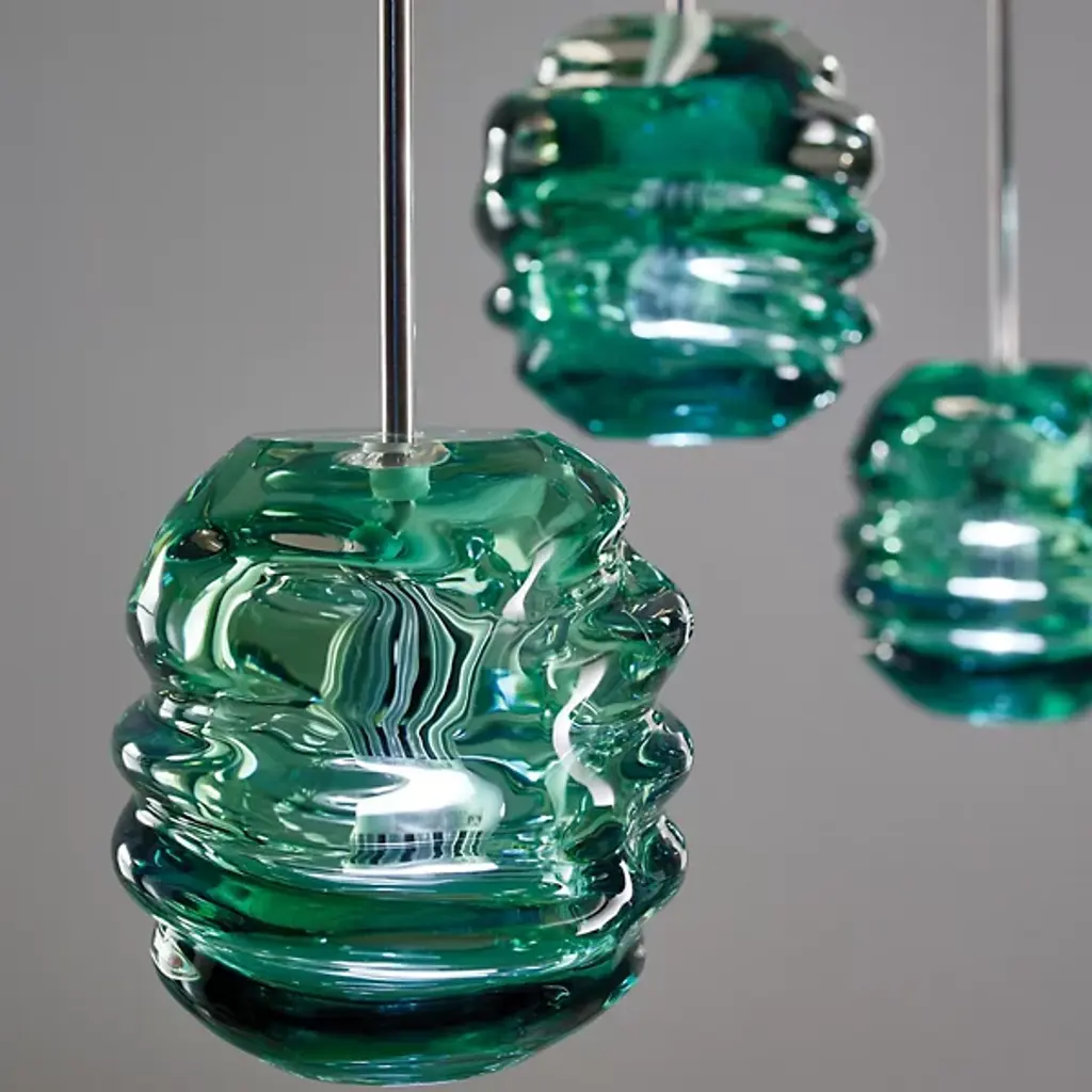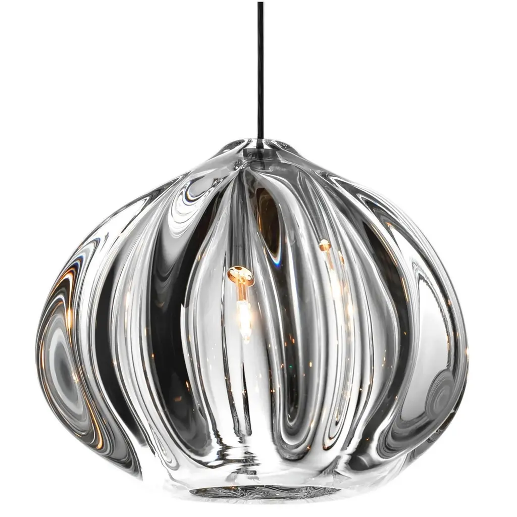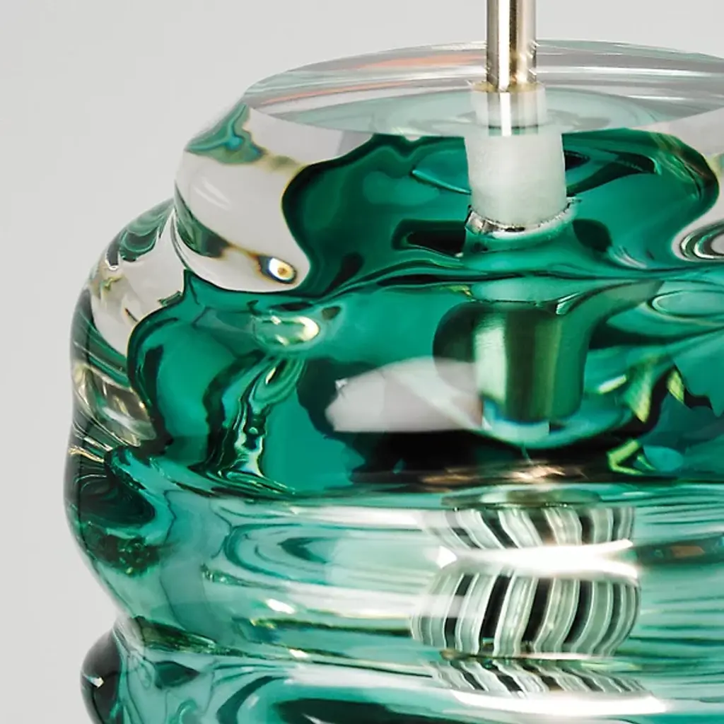 The Audra Mini Pendant by Visual Comfort Modern, formerly known as Tech Lighting, captures the essence of water with its thick, flowing glass and distorted lighting effect. Molded by Polish artisans to create an incredibly deep and rhythmic silhouette, the pendant’s undulating form fits over a single light source, bending and refracting light as though underwater. A stunning addition to counters and kitchen tables.
