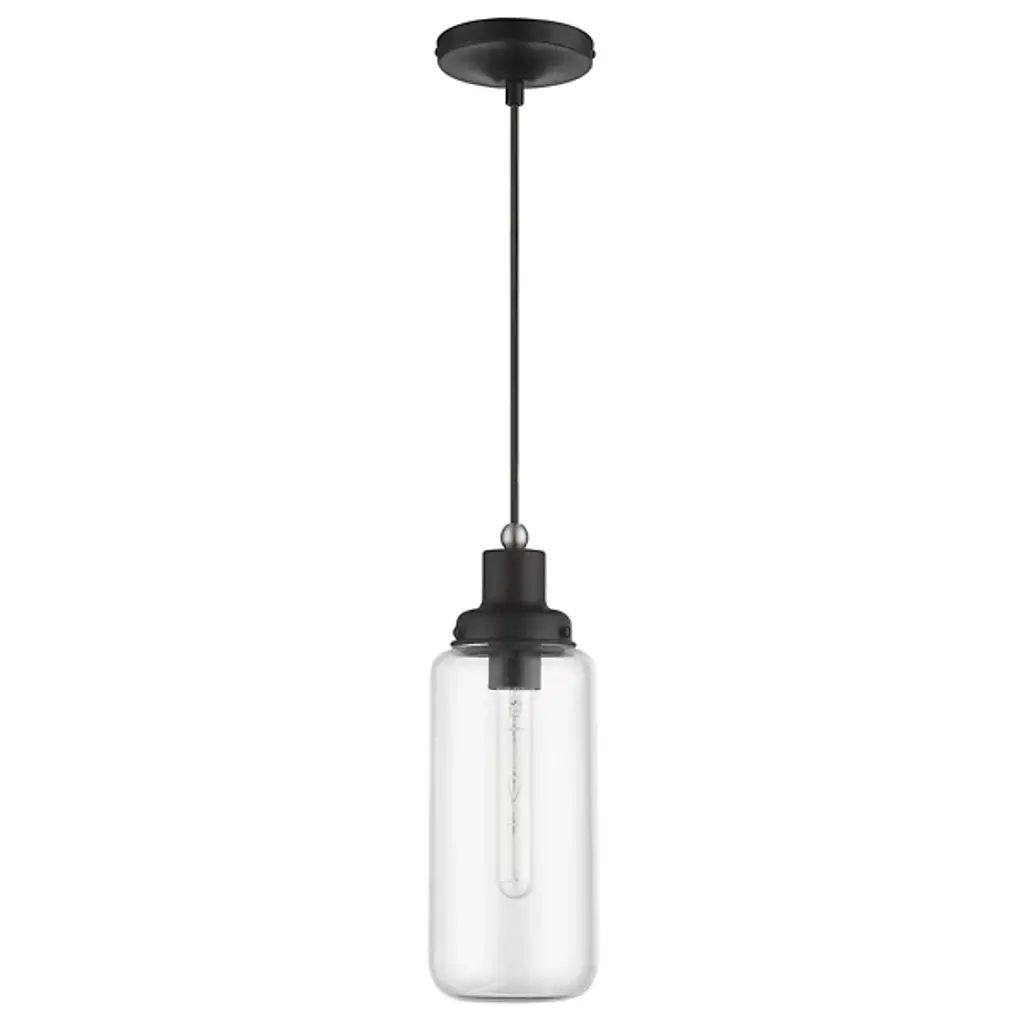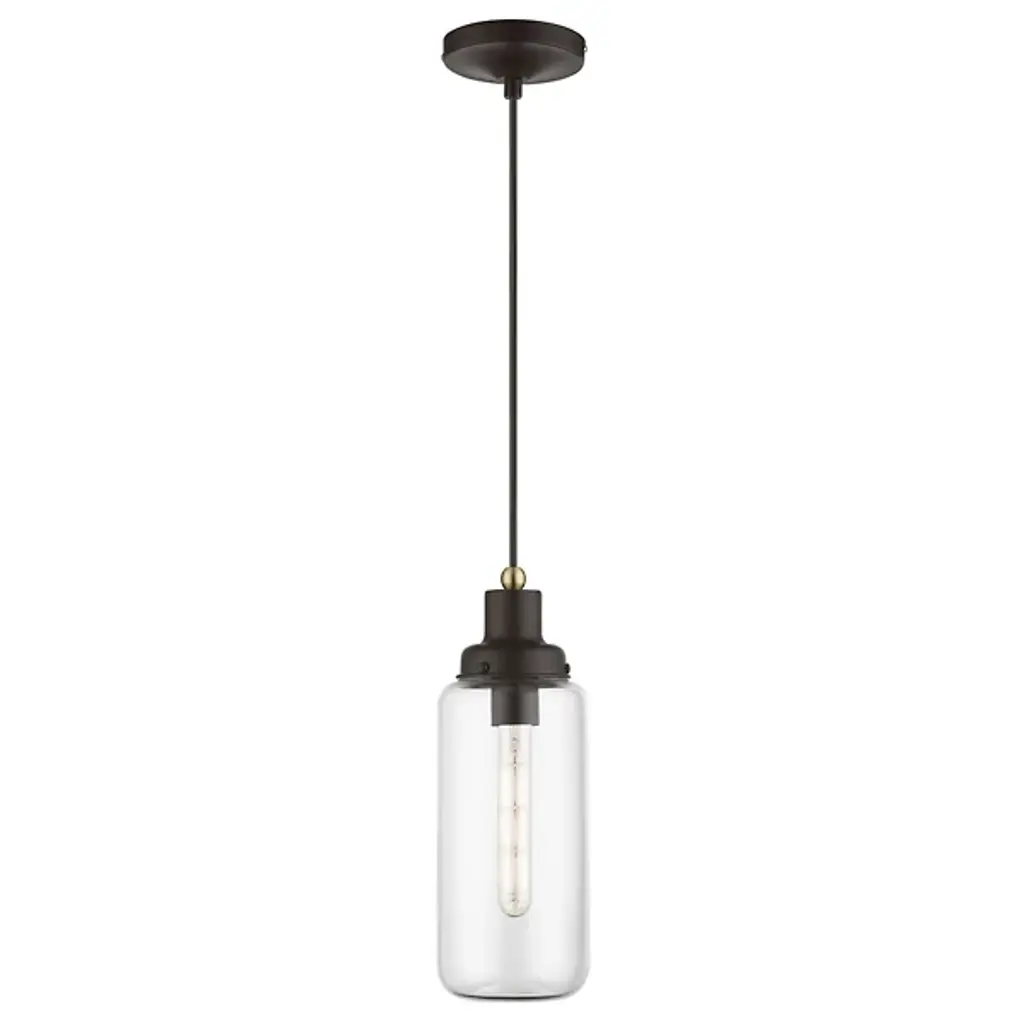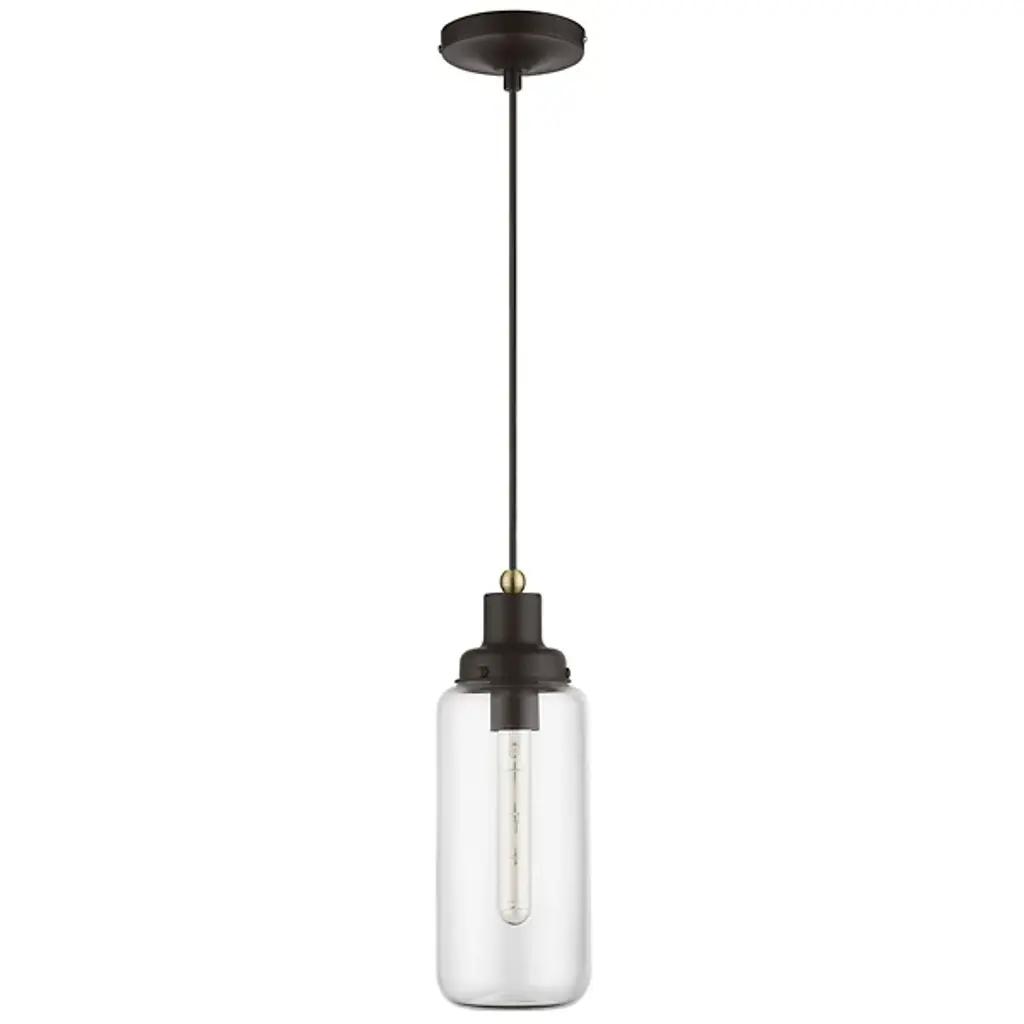 Enrich ceilings with the elegant glow of vintage industrial style through the layered design of the Audrey Mini Pendant from Alder & Ore. Suspended via a disc canopy and slim, strong cord, it secures a downward-facing single socket best used with retro filament-style bulbs, while a rounded cylinder shade of hand-blown glass extends around it, spilling out an even and enticing warmth.