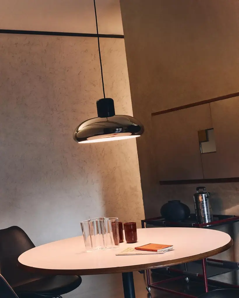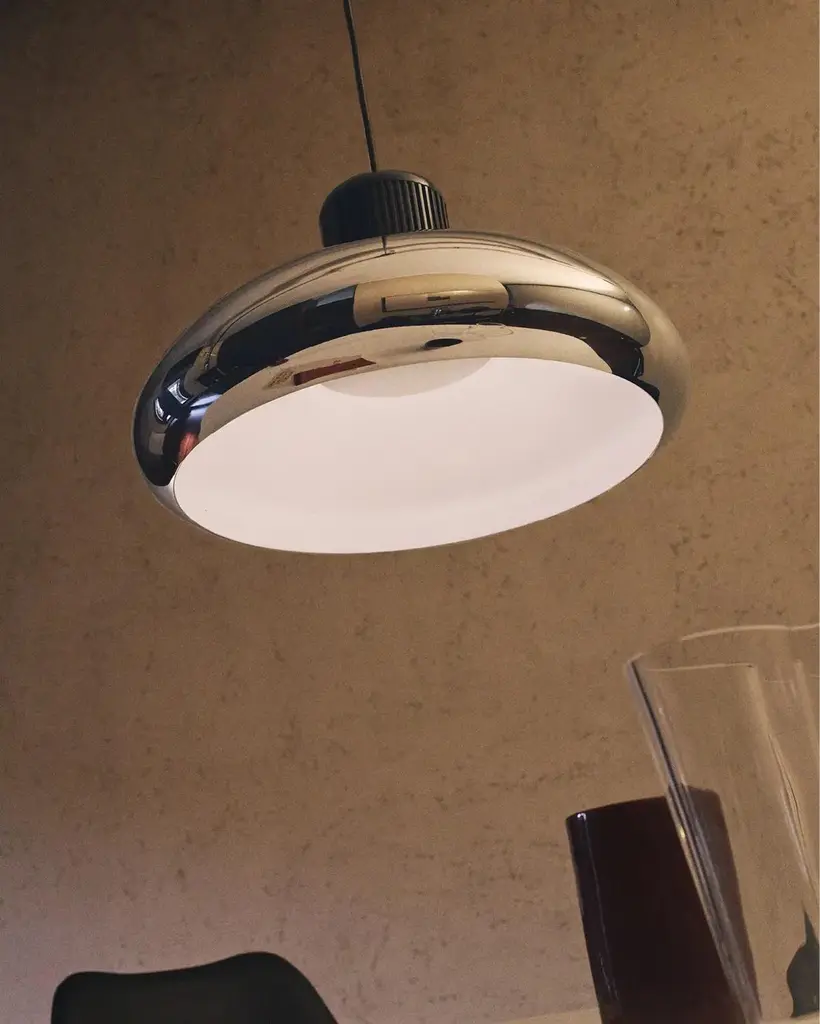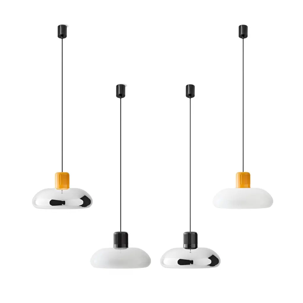 Aulenti and Castiglioni 'Trepiù' Pendant for StilnovoFounded in 1946 in Milan, Stilnovo was one of the most innovative lighting companies in Italy during the Midcentury era, producing iconic pieces by such luminaries as Joe Colombo, Angelo Mangiarotti, Ettore Sottsass, Gaetano Scolari, Piero Castiglioni, Bruno Gatta and others. Stilnovo was relaunched in 2019 with a commitment to faithfully re-edition its legendary designs with uncompromising attention to detail, materials and craftsmanship.The 'Trepiù' pendant lamp, originally designed in 1972 by Gae Aulenti and Livio Castiglioni, is wonderfully modern, with a chromed sandblasted PMMA diffuser and a black painted steel mount. The pendant casts a soft, uniform upward and downward light. This authorized re-edition is meticulously executed to Stilnovo's exacting standards in a chromed PMMA and aluminum shade with a painted steel canopy. Price per item. Available to order in unlimited quantities. Choice of colors include Black/Polished Chrome, RAL 1003 Yellow /Polished Chrome, Black/White RAL 9016, Yellow/White RAL 9016. This listing is for the Black/Polished Chrome variant.Chrome and black variant is available now. Lead time for yellow/chrome, yellow/white, and black/white variants is 6-8 weeks. Out of stock can add an additional 8 weeks or more. Please note that lead times and inventory availability are subject to change without notice. For time-sensitive orders, please contact us for current lead times prior to purchasing. Please note that this item ships from Stilnovo's facility, so local pickup is not available.Illuminated via one medium base bulb (bulb not included). Recommended 24 watt dimmable LED bulb. IP20 rated. This lamp is UL listed. Ceiling canopy covers a standard 4" US junction box. Maximum drop is 106.3 inches (95 inches of black cord plus the fixture height).Made to order. All sales are final
