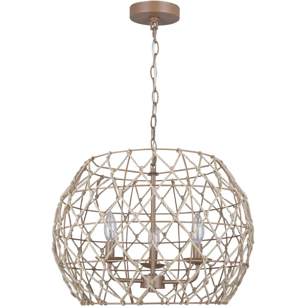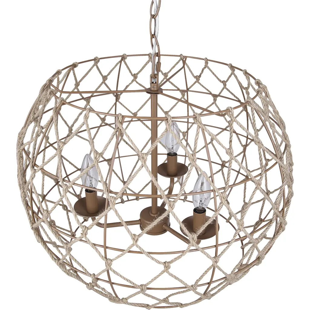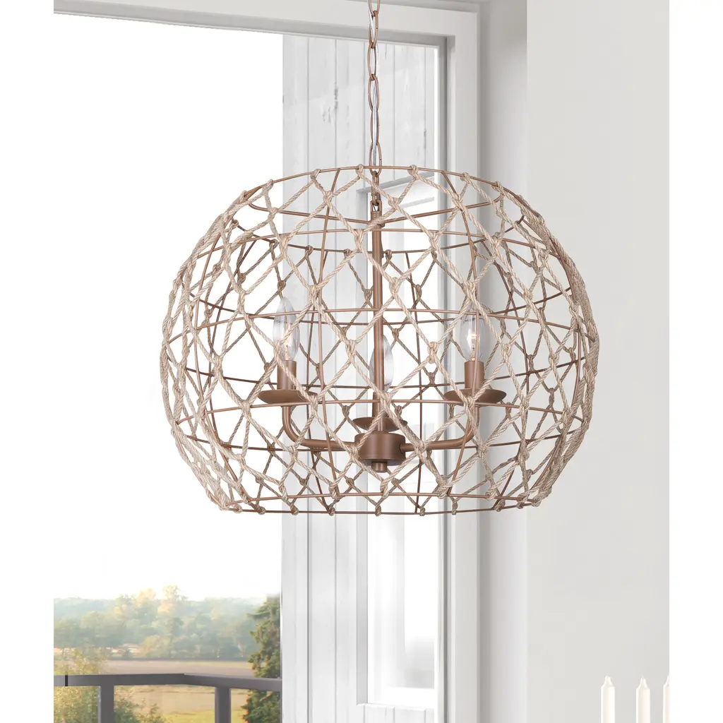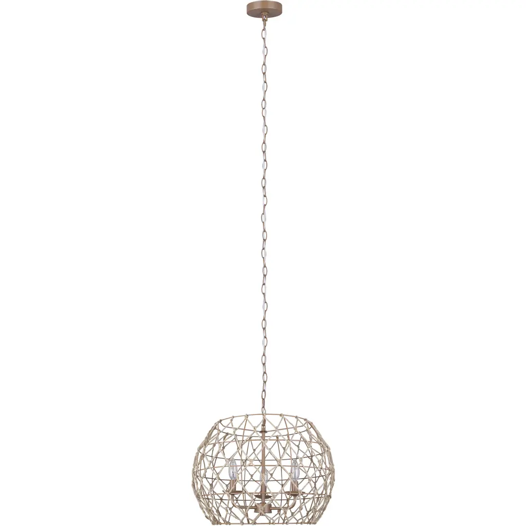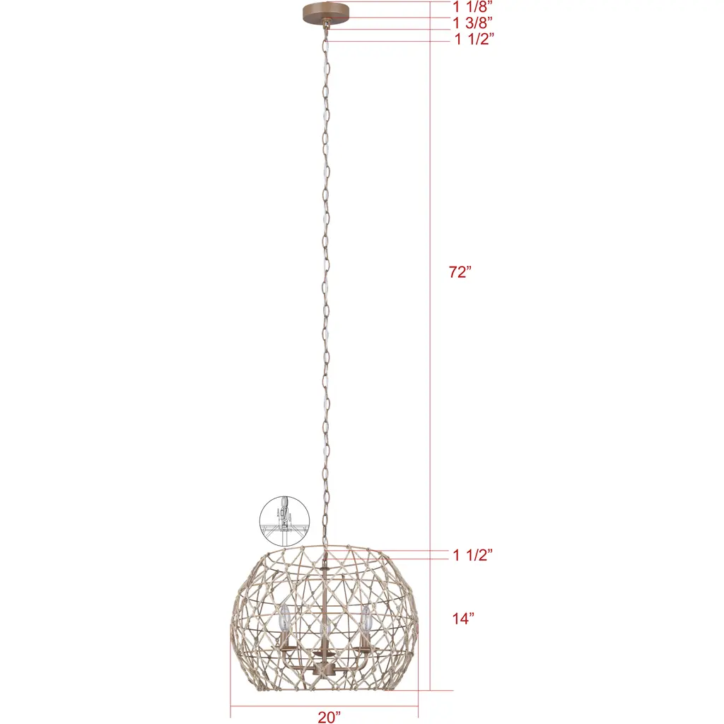 Illuminate Your Space with Elegance and Style: Aura 3 Light PendantTransform your home with the enchanting Aura 3 Light Pendant, a perfect blend of modern design and rustic charm. This exquisite piece features a natural tied rope shade, creating a warm and inviting atmosphere in any room. With its sophisticated yet earthy appeal, the Aura pendant is ideal for living rooms, dining areas, or entryways, making a bold statement while providing ample lighting.Designed with attention to detail, the Aura pendant showcases a sturdy metal frame wrapped in natural tan rope, offering both durability and aesthetic appeal. The 20-inch width and 14-inch height make it a versatile addition to various spaces, and the adjustable chain allows for customization of the hang height to fit your needs perfectly.Whether youre renovating your home or simply looking to add a touch of elegance, the Aura 3 Light Pendant is the perfect choice to elevate your interior décor.