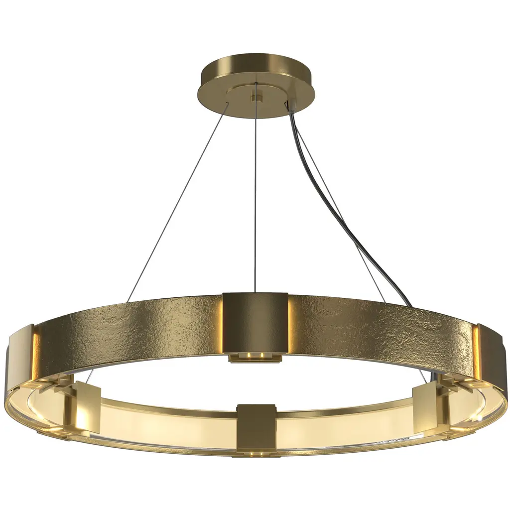 Our Aura Pendant is crafted using steel shaped and forged here in Vermont. The lights, shielded by iron plates, give a soft glow all-around to create the namesake aura.
