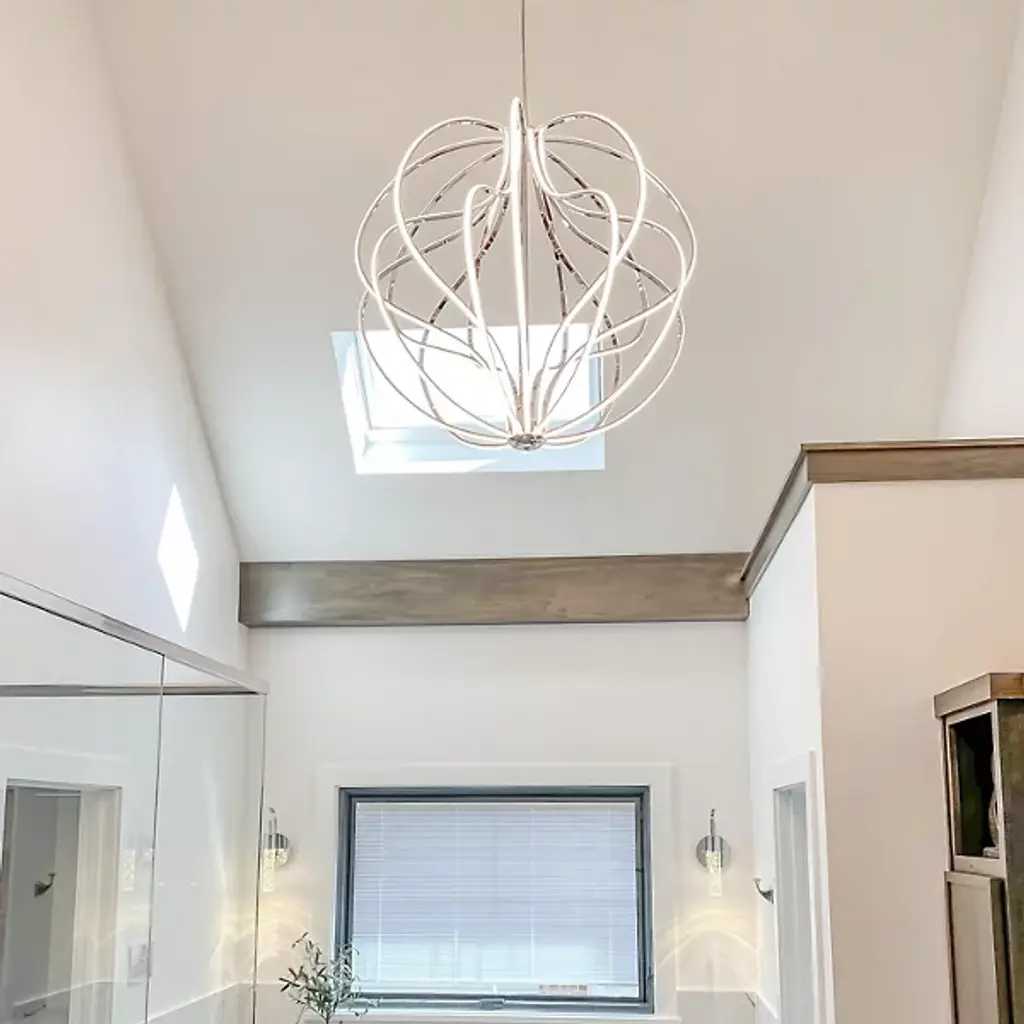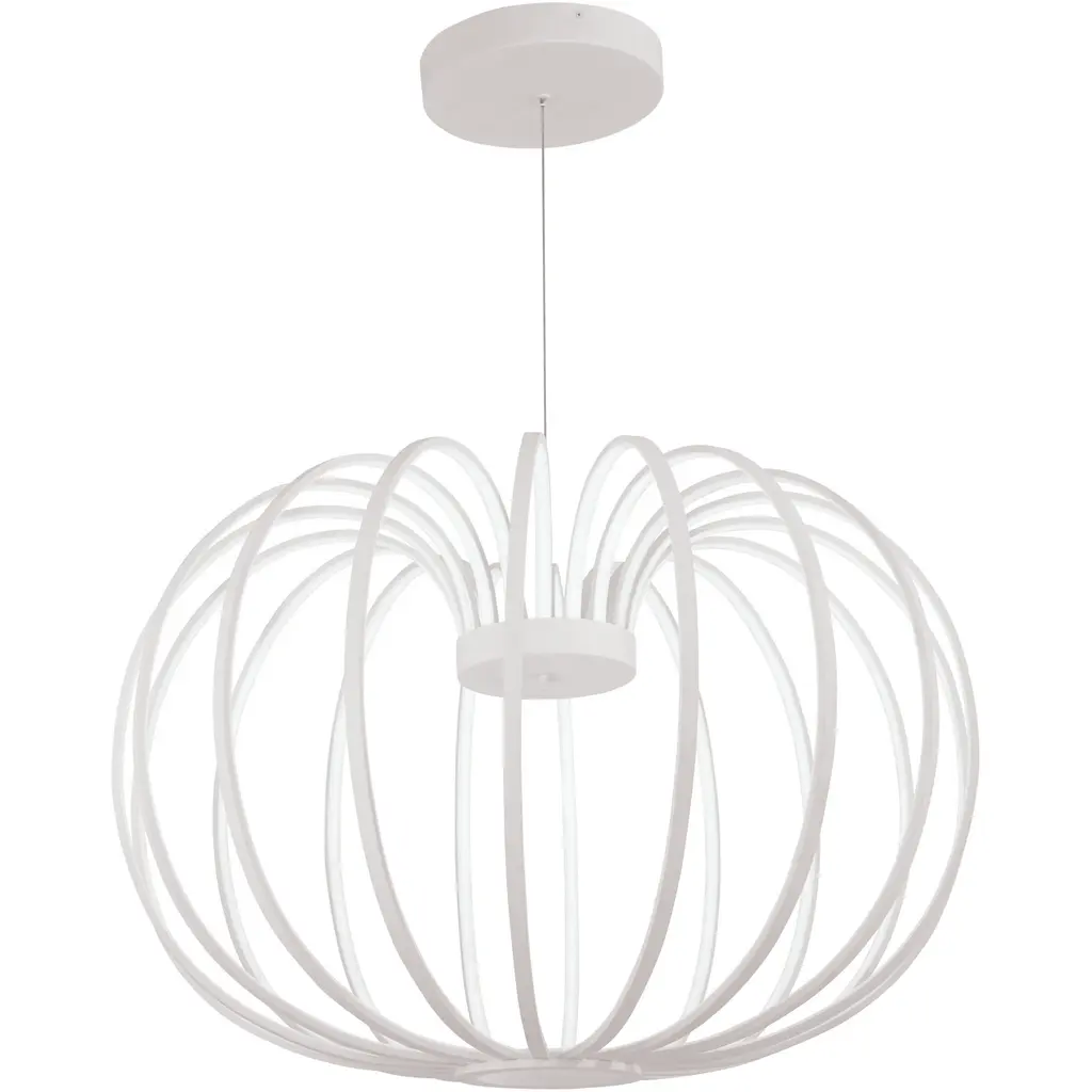 The ET2 Lighting Aura LED Pendant is an artistic flow of metal channels that show off their curves while brightening their surroundings. Made from aluminum with an added shine, the Aura LED Pendant shimmers with a glossy sheen that runs down the interior metal slats. The external surface features visible LED diodes for a creative combination of light form and function. The Aura LED Pendant is fully dimmable and suspends from a 120 inches of wire.