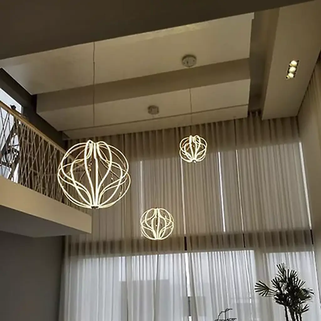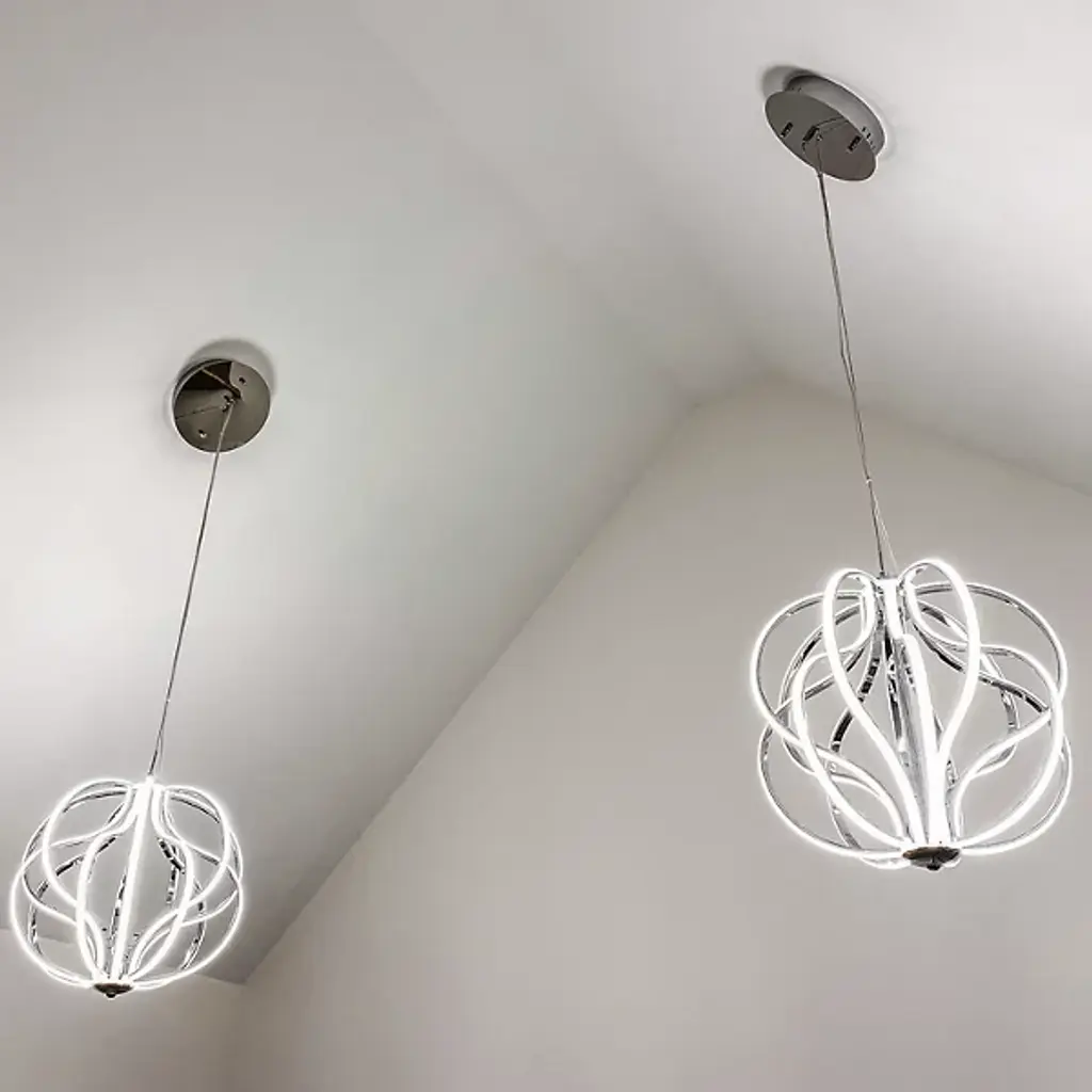 The ET2 Lighting Aura LED Pendant is an artistic flow of metal channels that show off their curves while brightening their surroundings. Made from aluminum with an added shine, the Aura LED Pendant shimmers with a glossy sheen that runs down the interior metal slats. The external surface features visible LED diodes for a creative combination of light form and function. The Aura LED Pendant is fully dimmable and suspends from a 120 inches of wire.