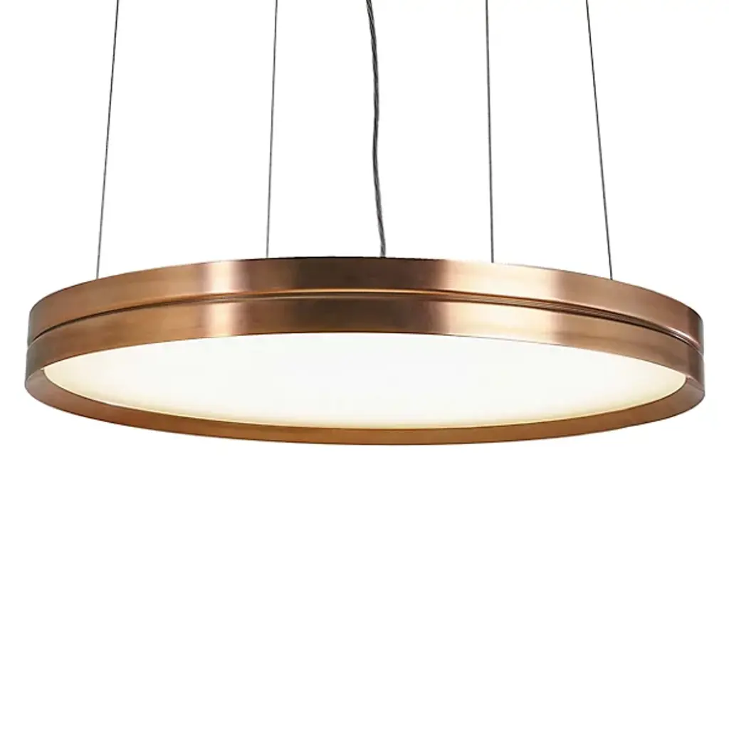 Add some positive energy to your living space with the Aura LED Pendant by Ridgely Studio. Its clean, ringed form has been sculpted out of Cold Rolled Steel and lined with an inner hand rubbed Satin Acrylic diffuser. Once lit, an integrated LED source radiates through the diffuser, producing a soft, even ambiance that can set the mood in any contemporary setting.