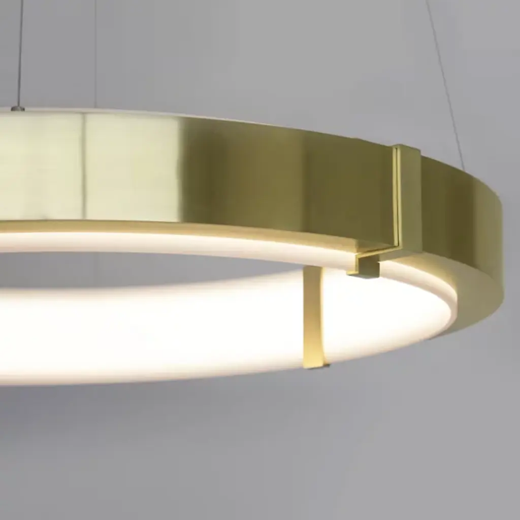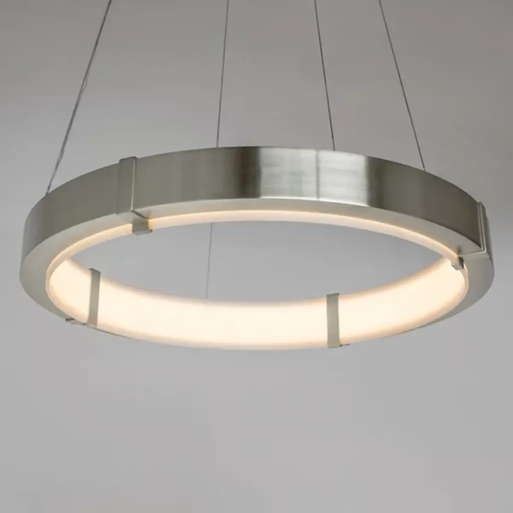Add some positive energy to your living space with the Aura LED Pendant by Ridgely Studio. Its clean, ringed form has been sculpted out of Cold Rolled Steel and lined with an inner hand rubbed Satin Acrylic diffuser. Once lit, an integrated LED source radiates through the diffuser, producing a soft, even ambiance that can set the mood in any contemporary setting.