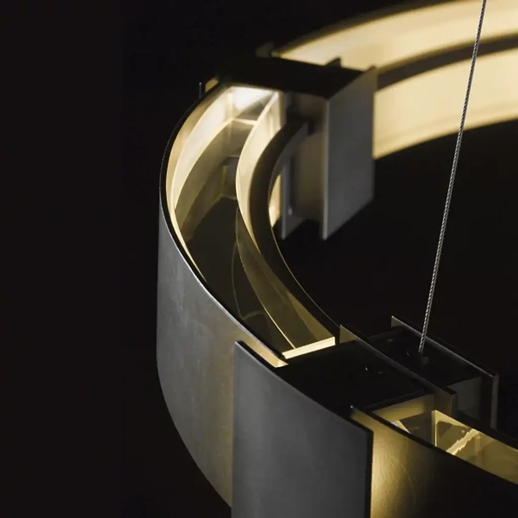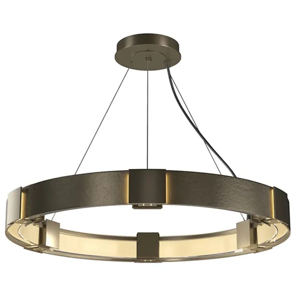 A soft contemporary piece, the Hubbardton Forge Aura Pendant is a handsome piece that complements a variety of design schemes. Its rounded hand-forged frame acts as a halo of light, a result of light shining through solid clear-cut glass blocks with frosted backs.