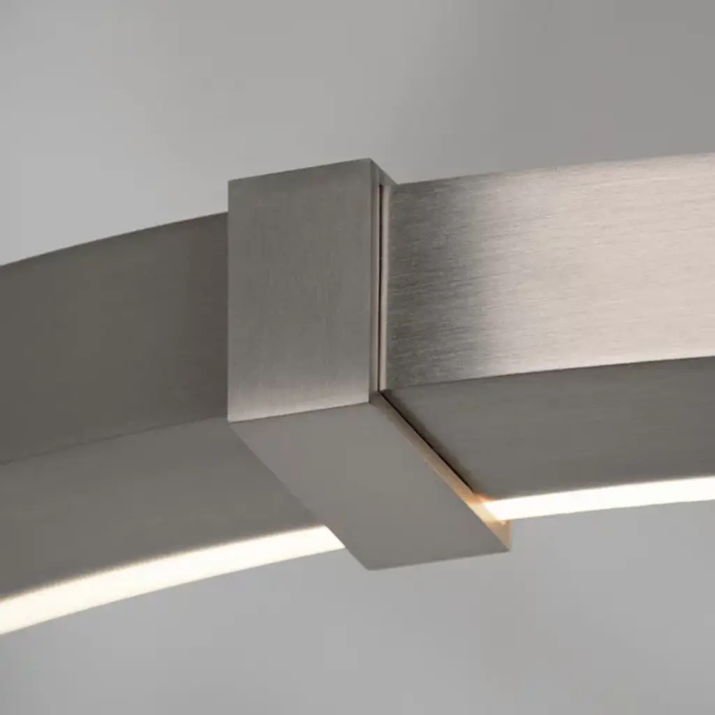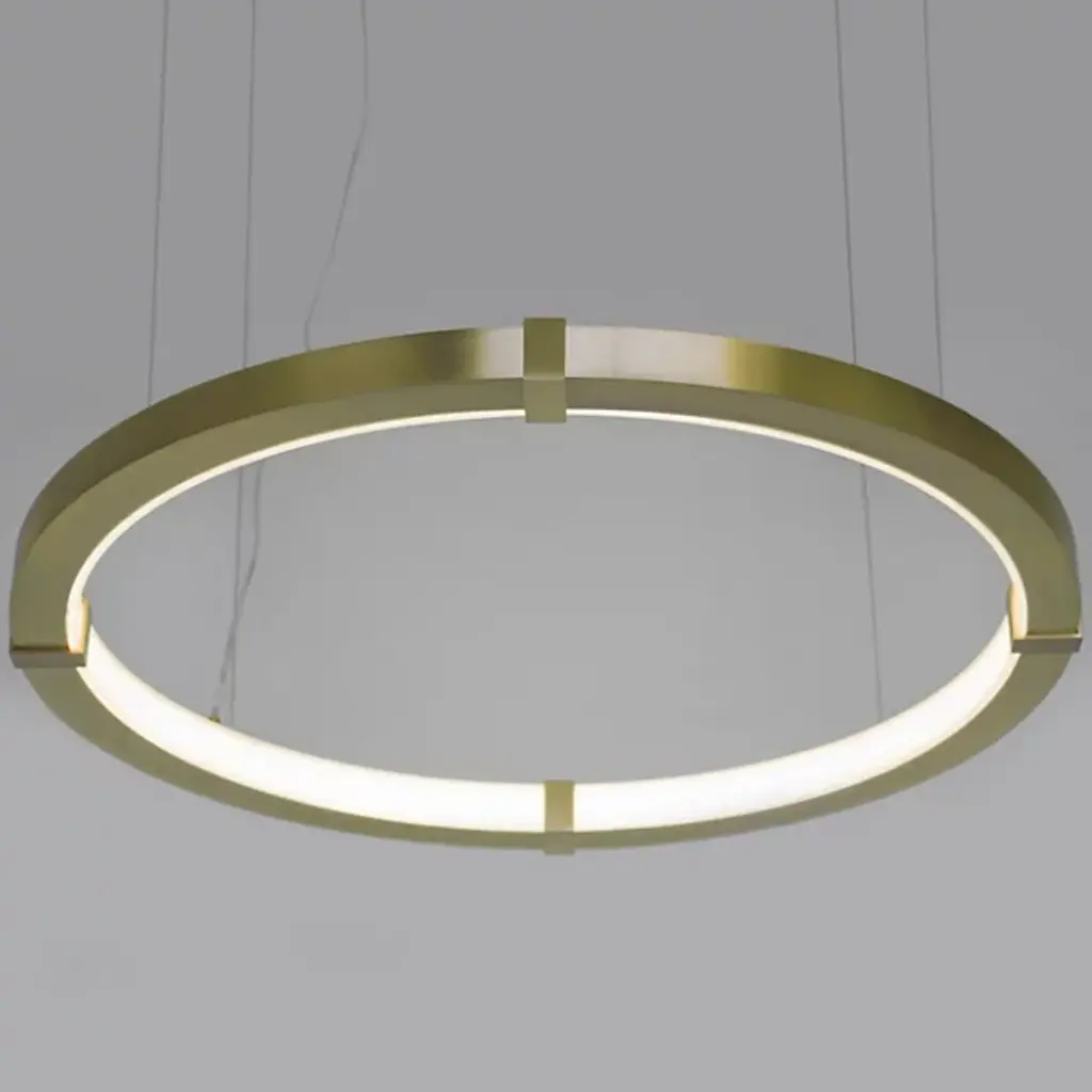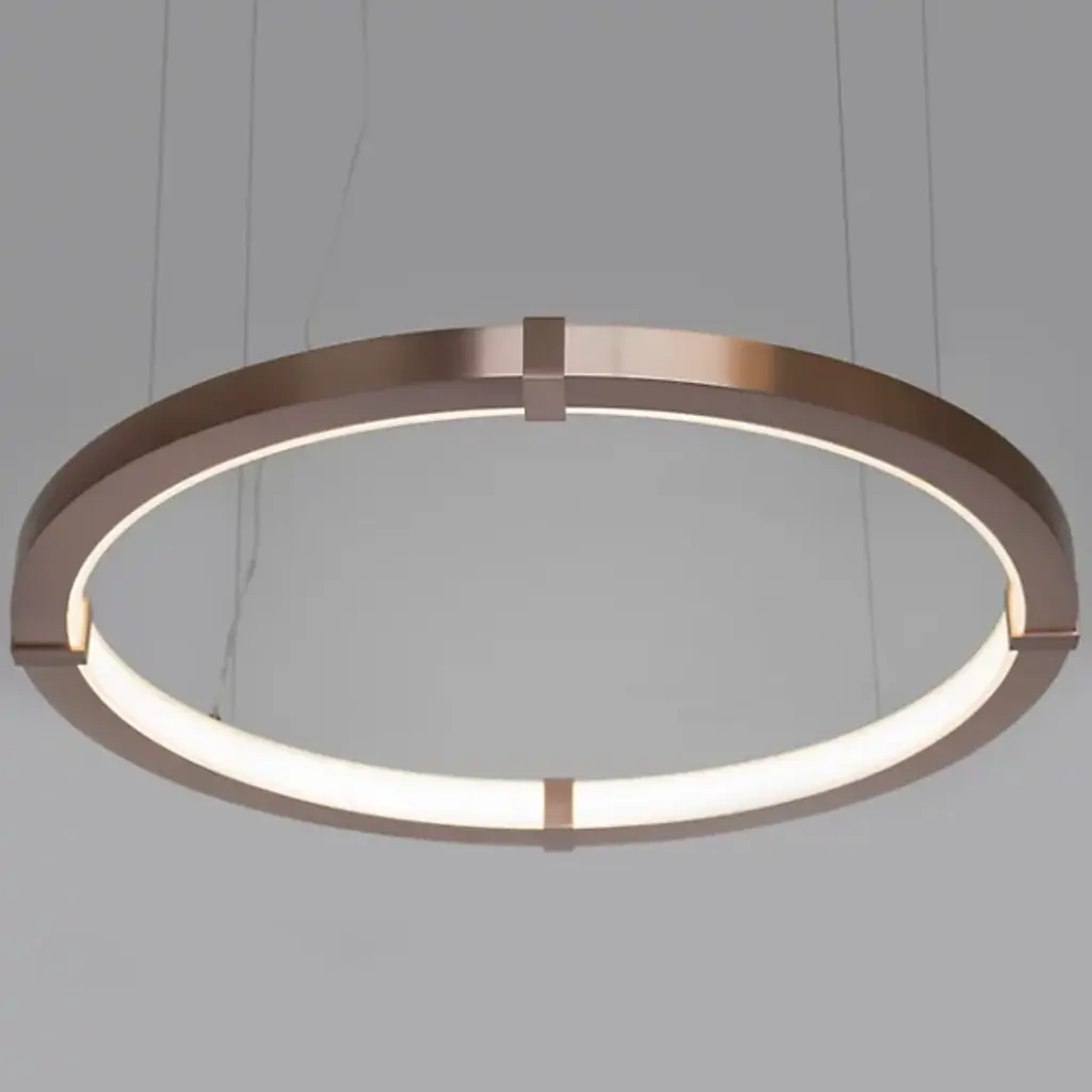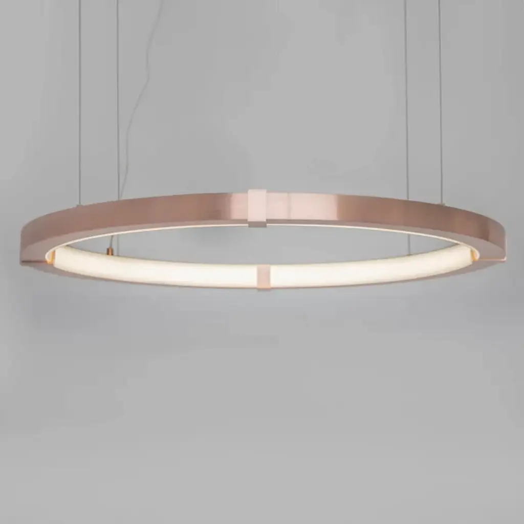 Streamline your kitchen, dining area or living space with an Aura Slim Pendant by Ridgley Studio. The slender ring of cold rolled steel suspended from thin cables brings sleek minimalism to contemporary interiors. It's available in a wide array of chic metal finishes for stylishly cohesive décor. With a satin acrylic diffuser and an LED strip, this ceiling fixture produces warm white light and is compatible with a dimmer for the perfect atmosphere.