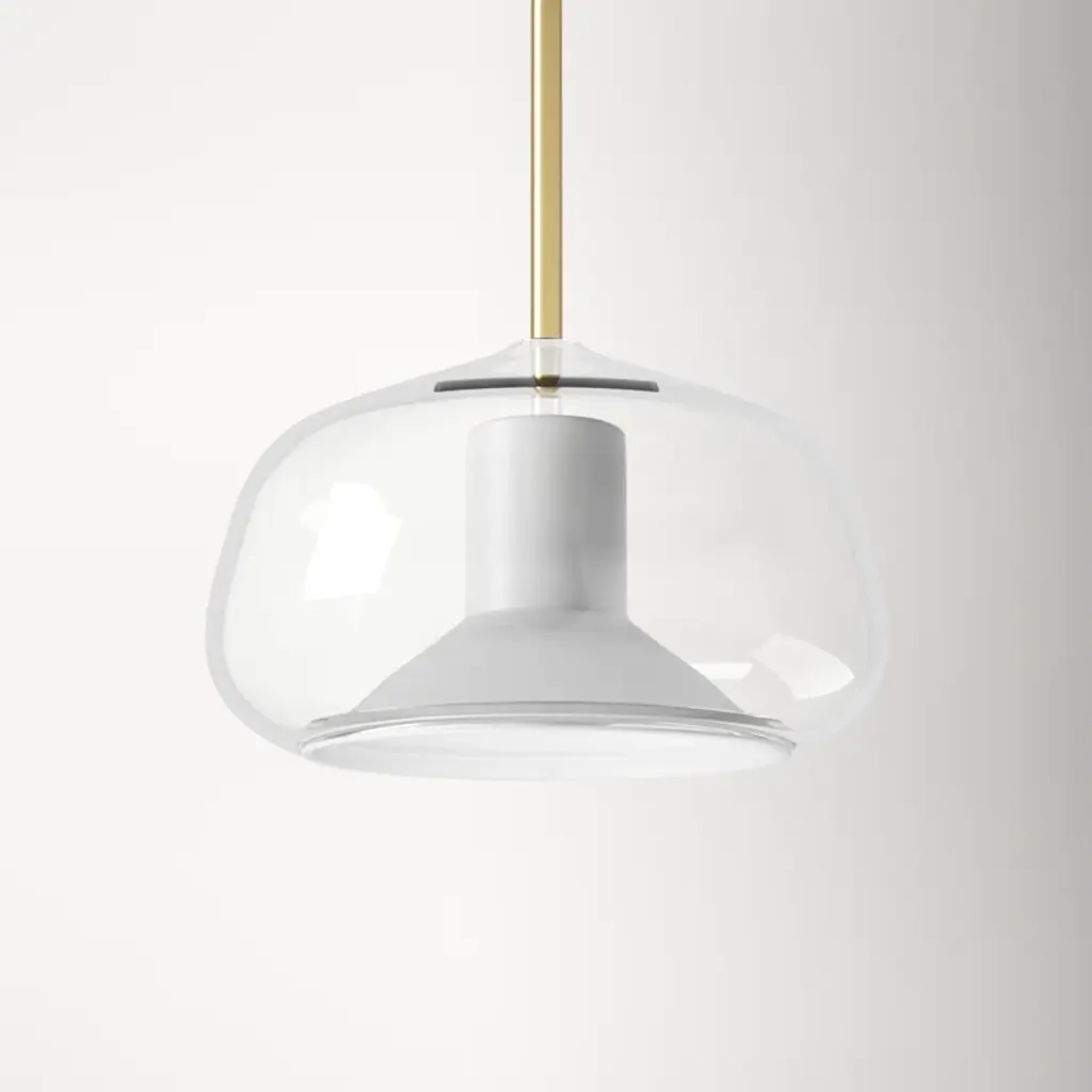 The Aurelia Bold LED Pendant from Leucos Lighting is designed by Patrick Jouin. Aurelia features breathtaking handblown glass that finds the balance between dimensionality and delicateness. It is made in Italy, representing a long-established tradition of expert craftsmanship. This pendant features direct and indirect lighting sources, enhancing functionality and making Aurelia highly versatile. A metal composition adds strength to this sloped-ceiling adaptable fixture. The artful taper of Aurelia’s internal structure draws your eye.