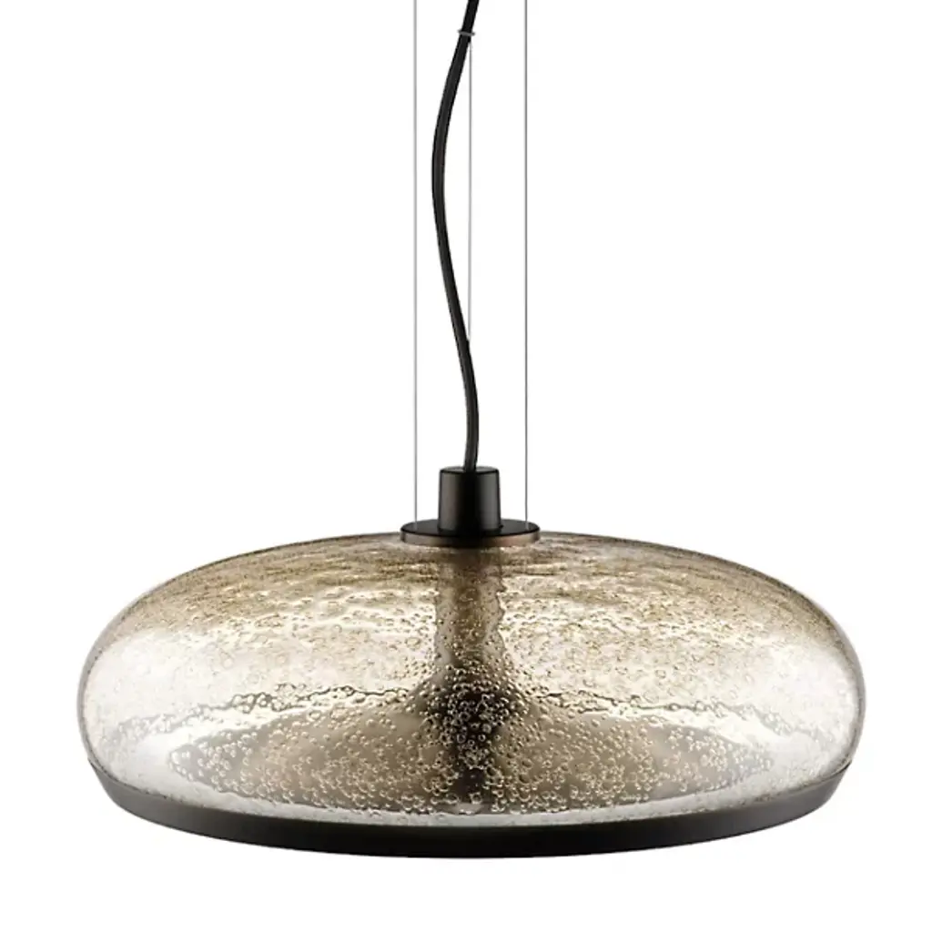 The Aurelia LED Pendant from Leucos Lighting is designed by Patrick Jouin. This sloped-ceiling adaptable pendant is made in Italy. It blends Italian design with contemporary aesthetics, creating a captivating lighting solution. It features a shade of gorgeous handblown glass that gives it a delicate appearance. Aurelia is supported by durable metal for dependability and longevity. Integrated LEDs bring radiant illumination from above. When paired with a separately sold ELV dimmer, you can adjust the brightness level effortlessly.