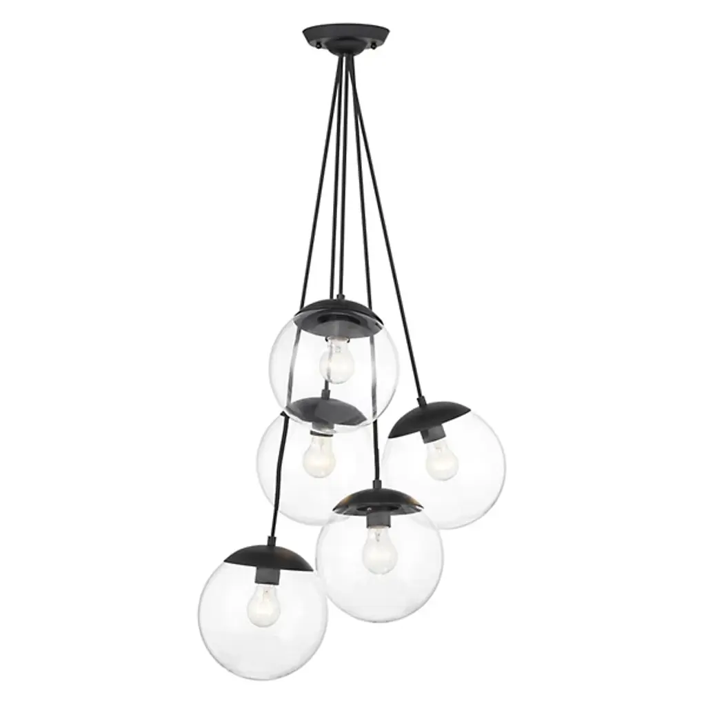The Auresa Cluster Multi Light Pendant from Minka-Lavery is meticulously crafted from steel with a clear glass shade. The sleek design offers a minimalist aesthetic that complements modern interiors beautifully. This fixture is ideal for kitchens, dining areas, and living rooms, this fixture provides clear, unobstructed illumination that brightens any space. Its versatile style effortlessly blends into various decor schemes, making it a perfect choice for those seeking both elegance and functionality in their lighting solutions.