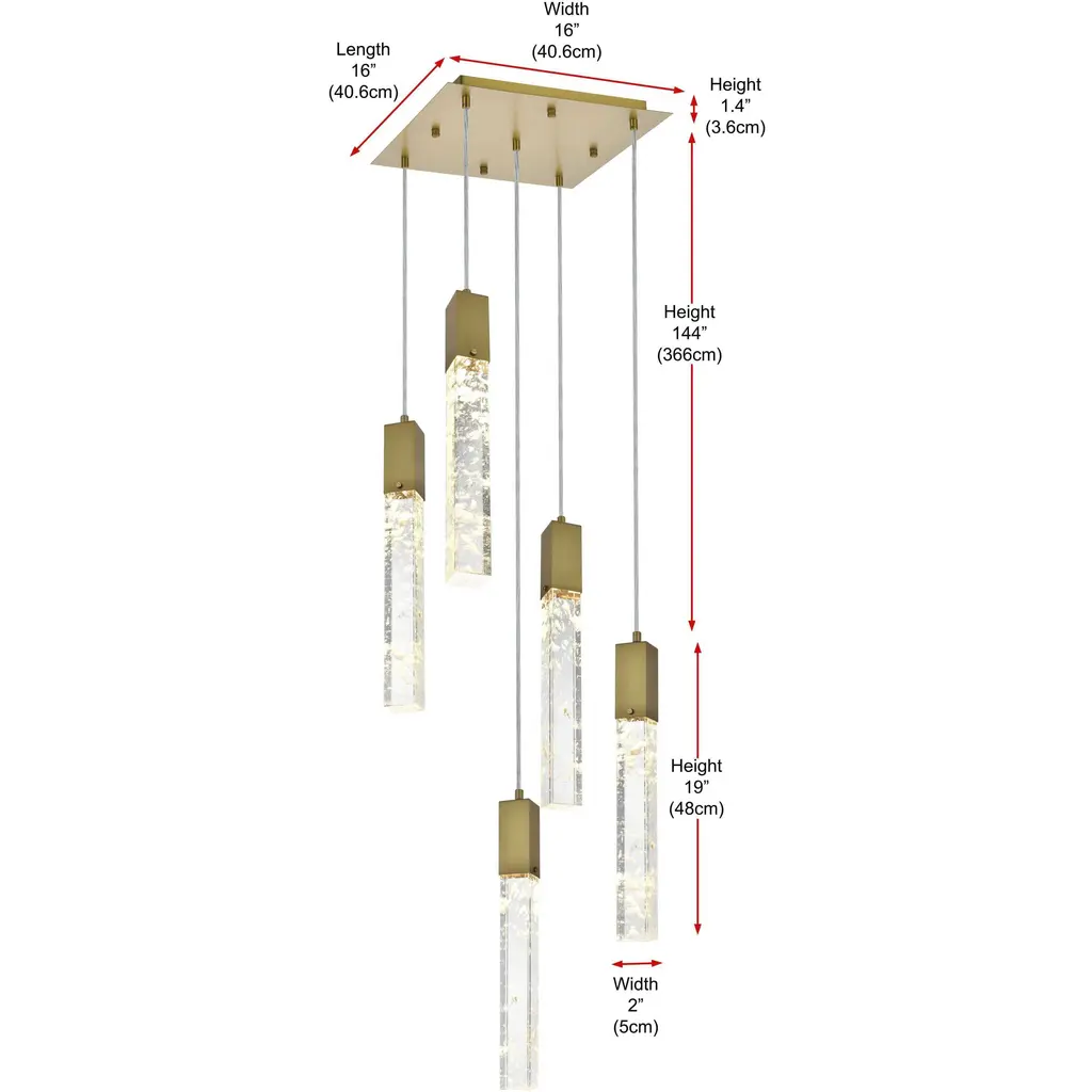 Aurora 5 Light 16 Inch Satin Gold Pendant Ceiling Light