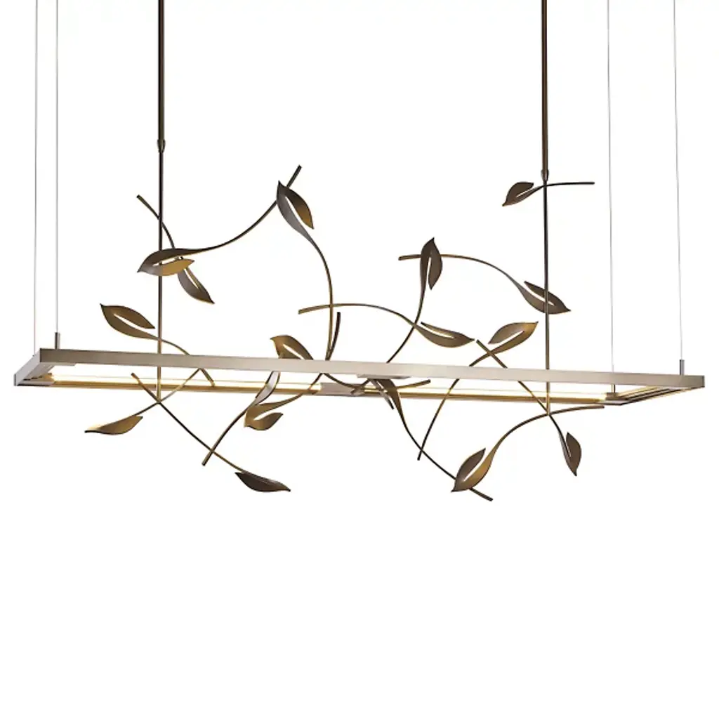 Part of the Four Seasons collection, Autumn hand-forged leaf designs provide the most traditional style of the collection, but has a more stylized graphic approach. It also features an LED light guide that's independently adjustable from the sculpture.