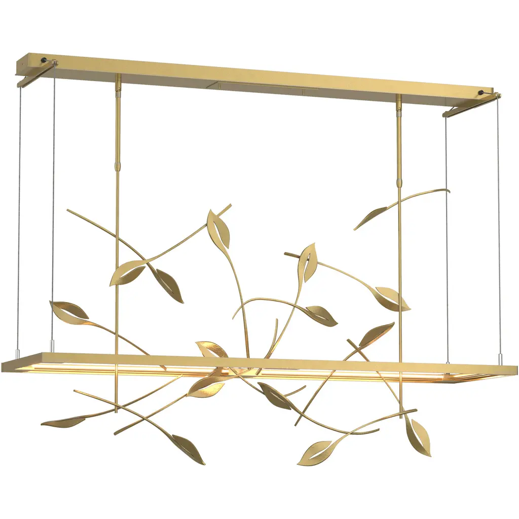 Part of the Four Seasons collection, Autumn hand-forged leaf designs provide the most traditional style of the collection, but has a more stylized graphic approach. It also features an LED light guide that's independently adjustable from the sculpture.