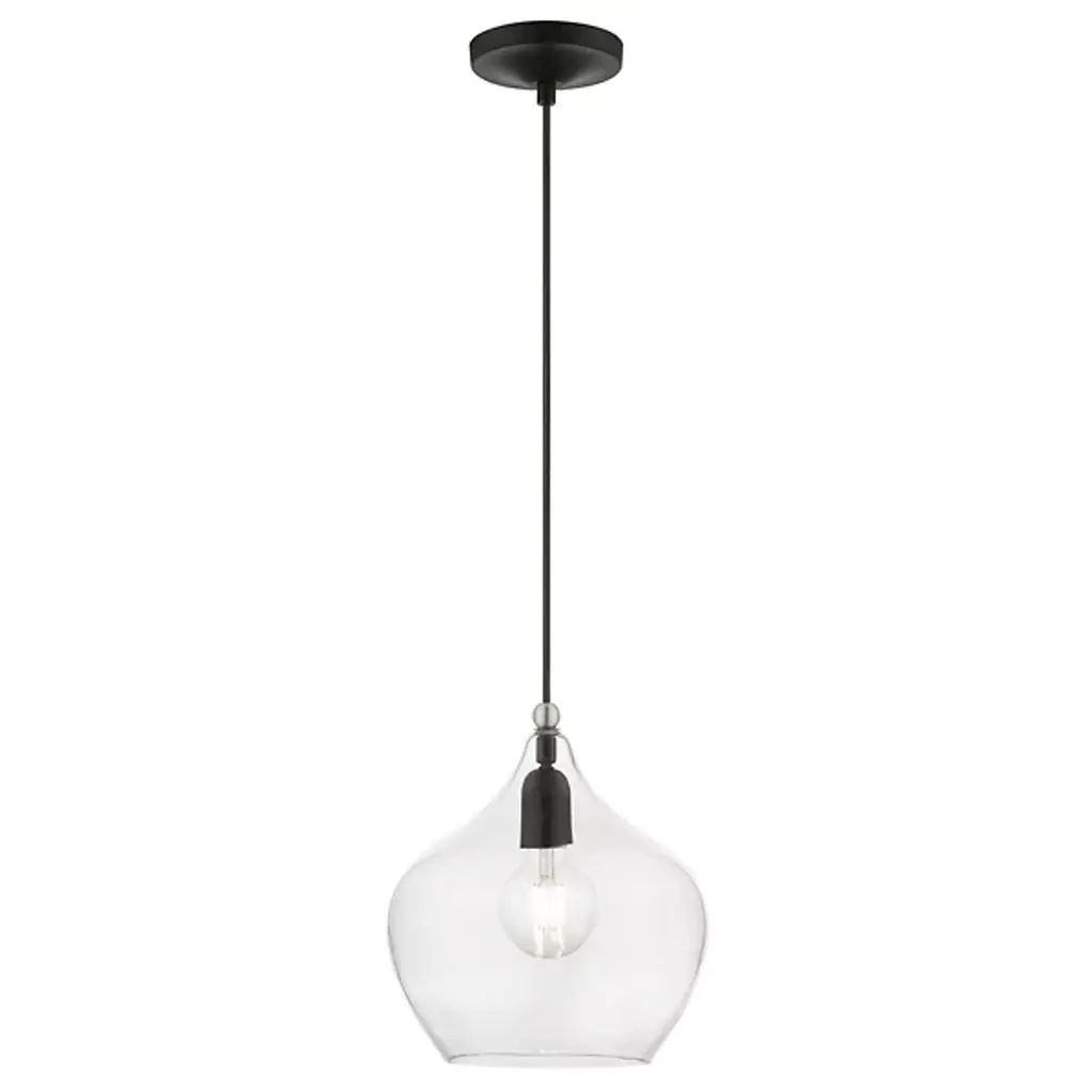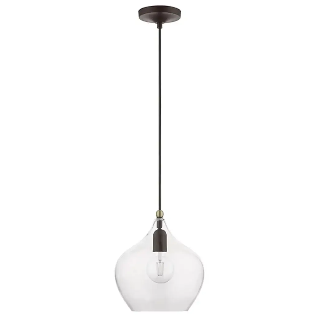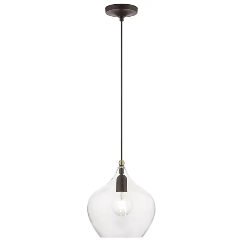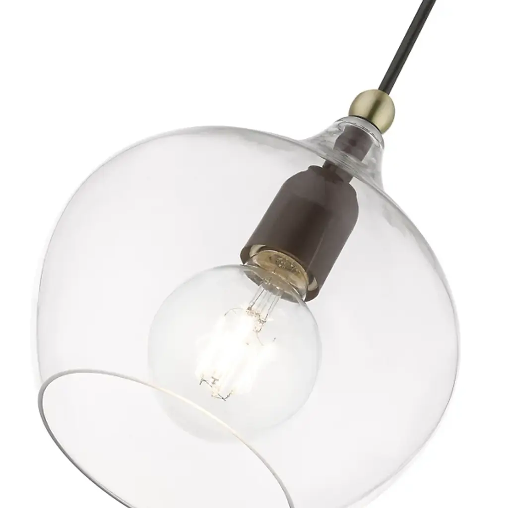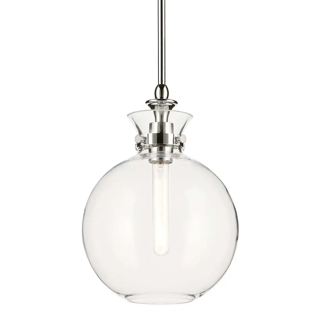 Add ample illumination to inside ceilings with the Ava Mini Pendant from Alder & Ore. Descending from a smooth disc canopy via a slim, strong metal stem, this single light pendant suspends a single socket below, threading through a sphere accent, while a goblet-style shade of clear glass extends around the lamping. The clean glass surface gentles glare to the sides, while the fixture itself works great solo over focus points or set in pairs or trios over long countertops and islands as part of a larger ensemble.