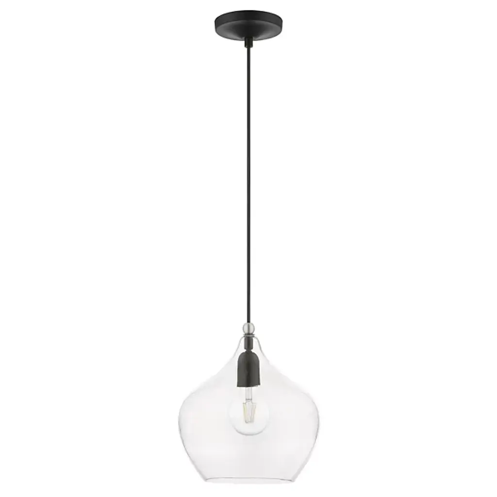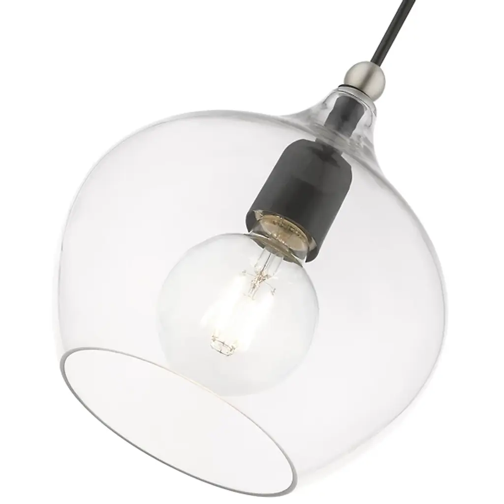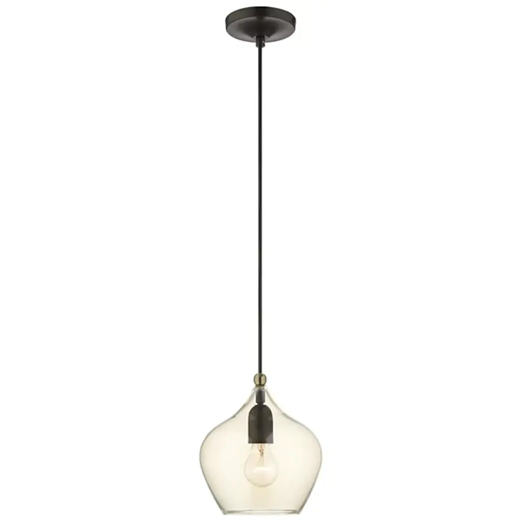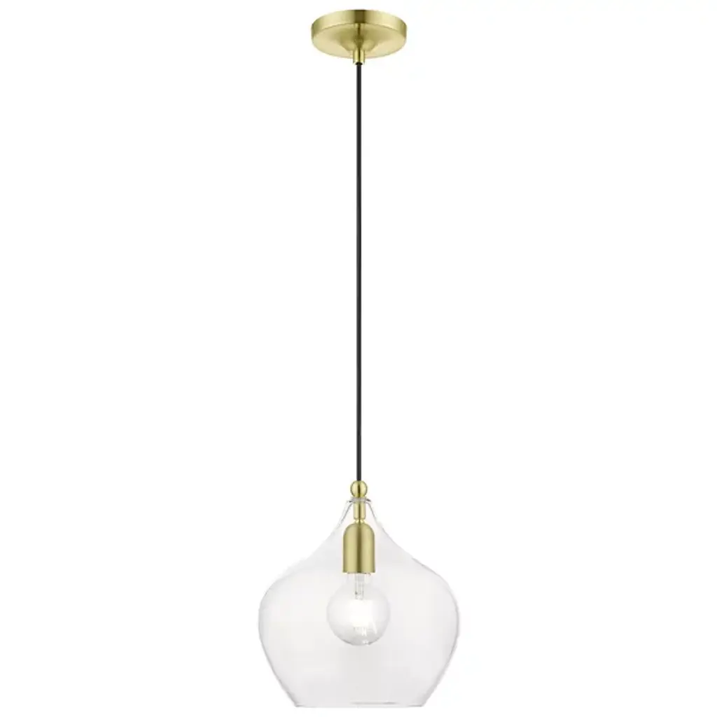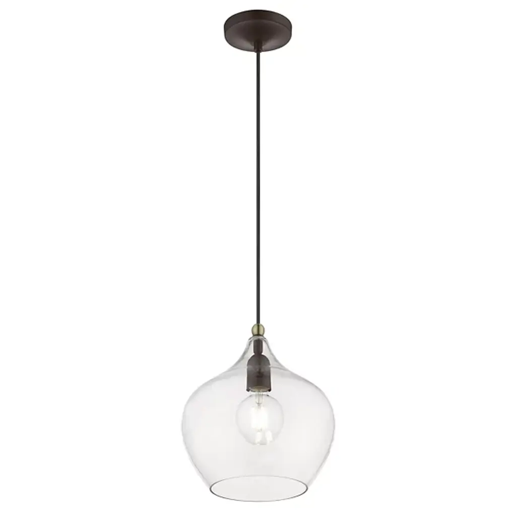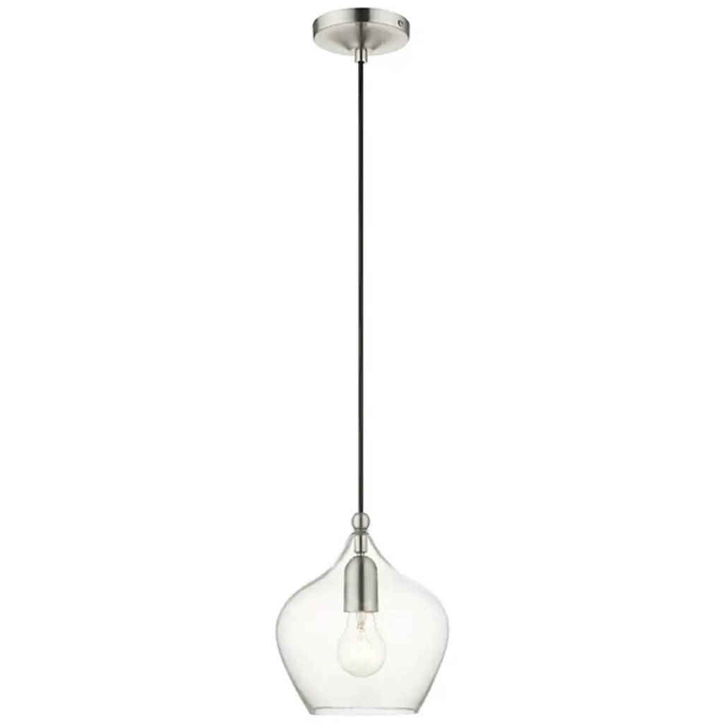 Add ample illumination to inside ceilings with the Ava Mini Pendant from Alder & Ore. Descending from a smooth disc canopy via a slim, strong metal stem, this single light pendant suspends a single socket below, threading through a sphere accent, while a goblet-style shade of clear glass extends around the lamping. The clean glass surface gentles glare to the sides, while the fixture itself works great solo over focus points or set in pairs or trios over long countertops and islands as part of a larger ensemble.