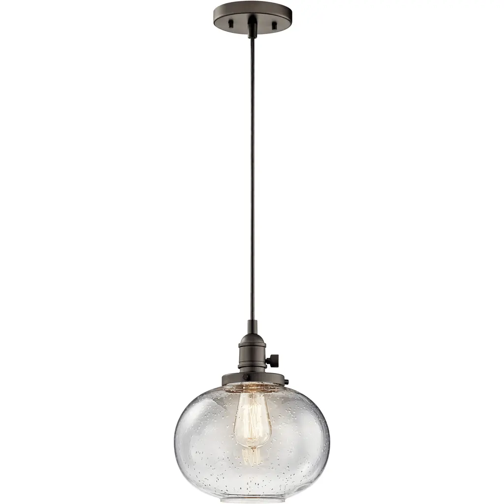 Create a mix and match masterpiece with this 1 light pendant from the Avery collection. Available in a Natural Brass finish with adjustable cording, Clear Seeded glass, and working paddle switches, this pendant stands out beautifully on its own or in a cluster.