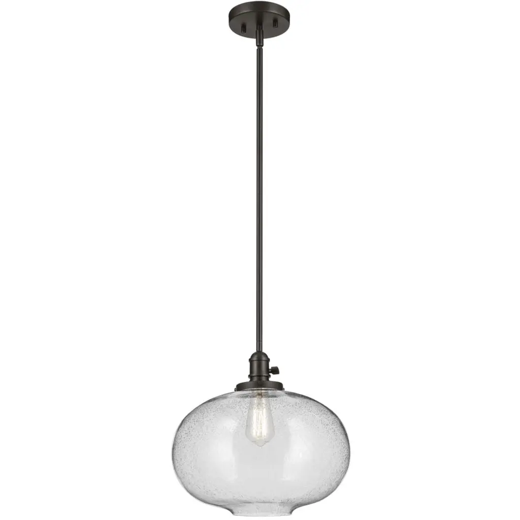 Offering convenience and ease in coordinating with other lighting options, the Avery 1 Light Globe Pendant is truly as versatile as it is beautiful. Avery's on-trend black finish creates a classic yet dramatic statement to any space while it complements a variety of decor, including industrial aesthetics. Its clear seeded glass adds to its charm by providing a beautiful, ambient lighting to the entire room and is easy to remove for convenience and ease of cleaning and replacement. A stem with a functional on/off switch on its socket completes the look.